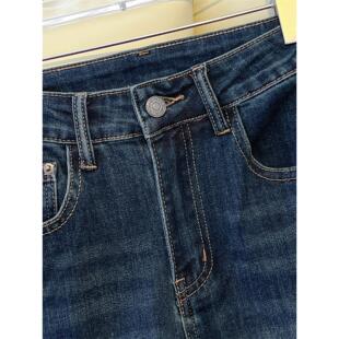 弹力马蹄喇叭裤 修身 女高腰显瘦2025秋冬新款 艾格深蓝色微喇牛仔裤