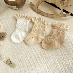 ins韩系夏季 网眼袜 女童公主袜花边袜宝宝棉袜a类薄款