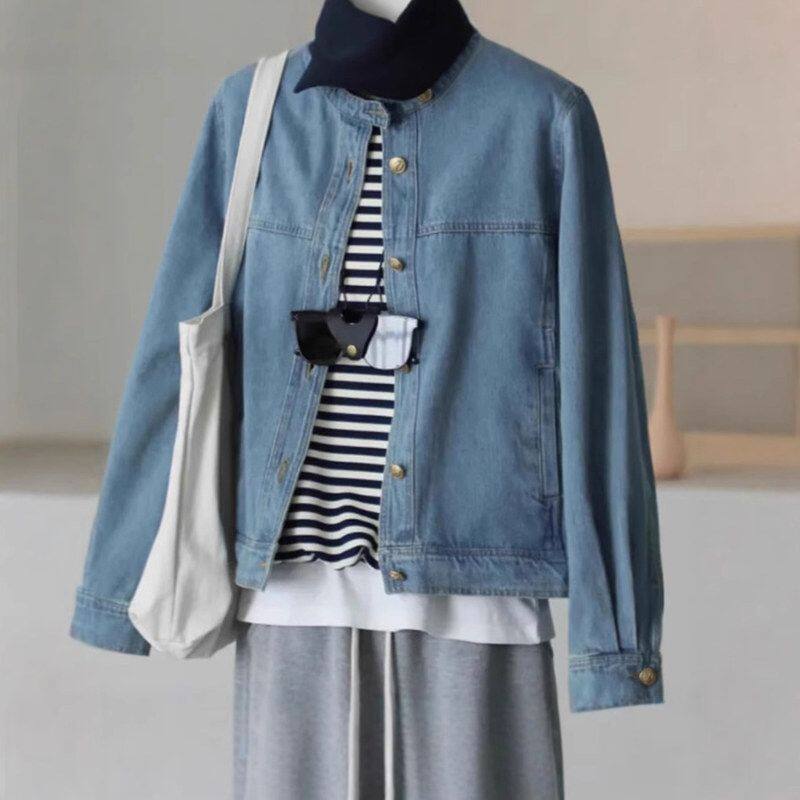 宽松显瘦短款 港风复古蓝色牛仔外套女秋季 夹克上衣 推荐 自留爆款
