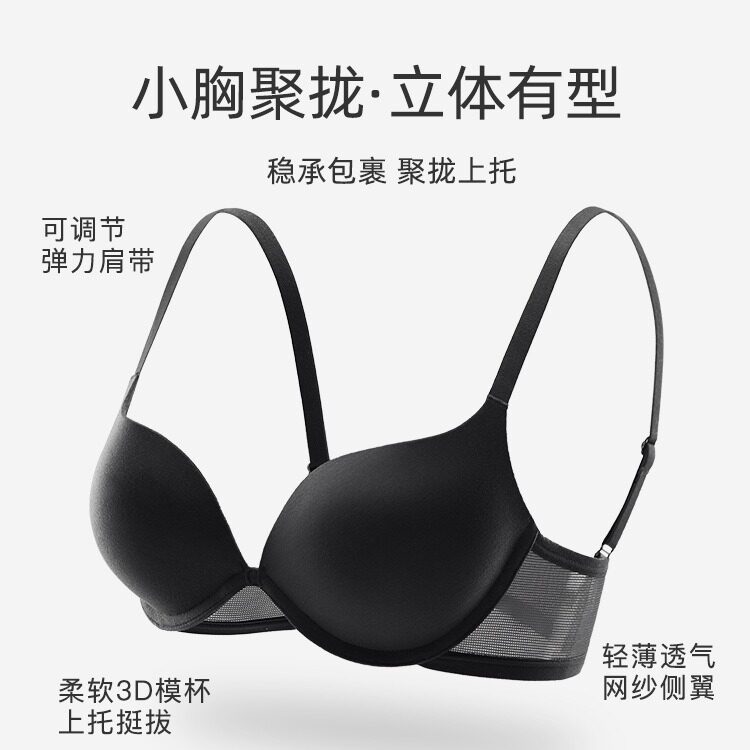 1654高级感小胸聚拢无女痕文胸V法式 深上内衣大集中托光面显性感