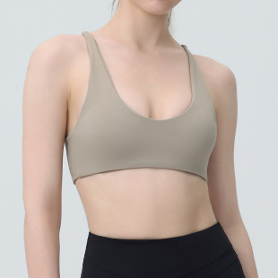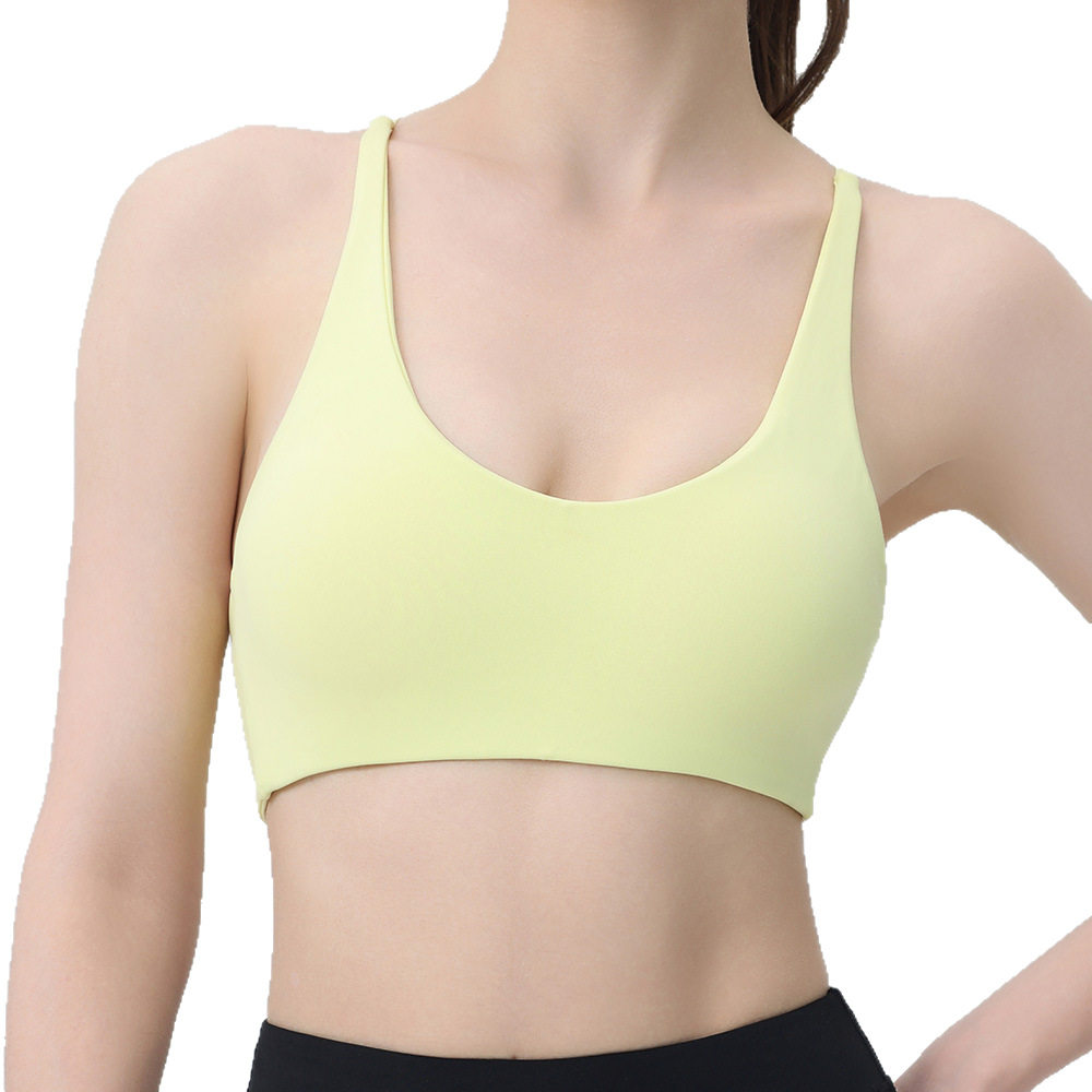 跨境欧美健身瑜伽服女文胸裸感无袖 含胸垫聚拢防震运动跑步内衣