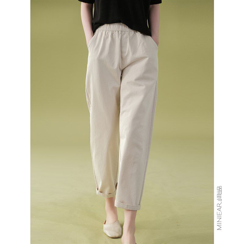 显瘦松紧腰裤 松紧腰百搭纯棉哈伦休闲薄款 子 日常B备 小耳出品