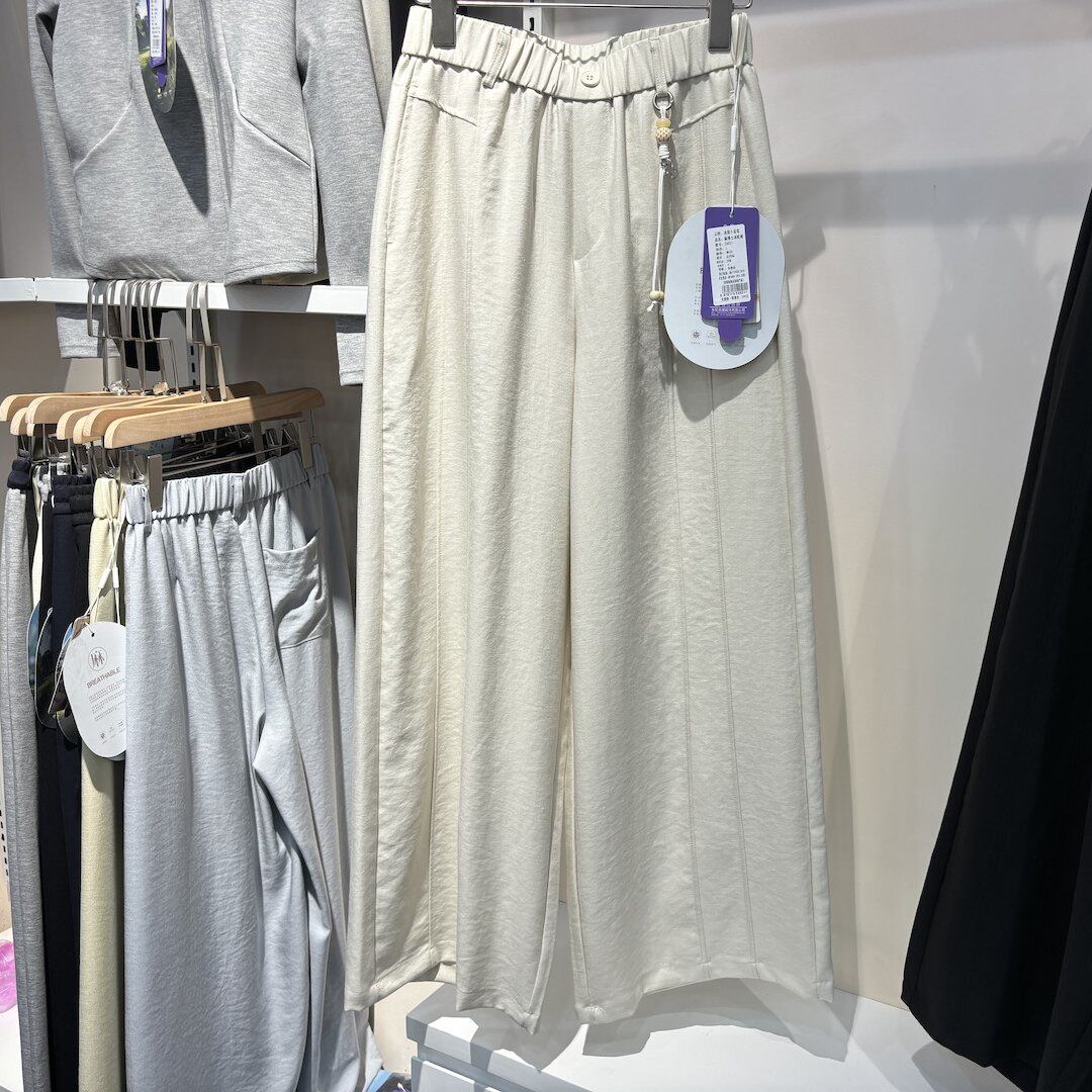 女宽松松紧腰垂坠感长裤 品牌26021麻博士冰肌裤 夏高腰显瘦阔腿裤