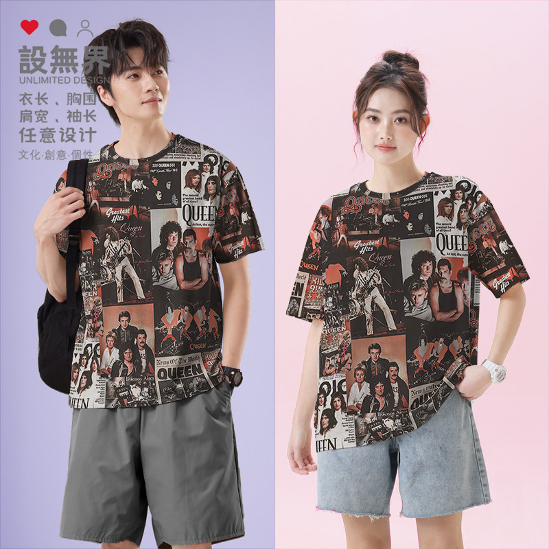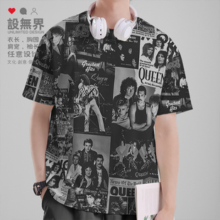 0015设 女装 无界 速干T恤男装 港风拼接QUEEN皇后乐队摇滚痞帅大码