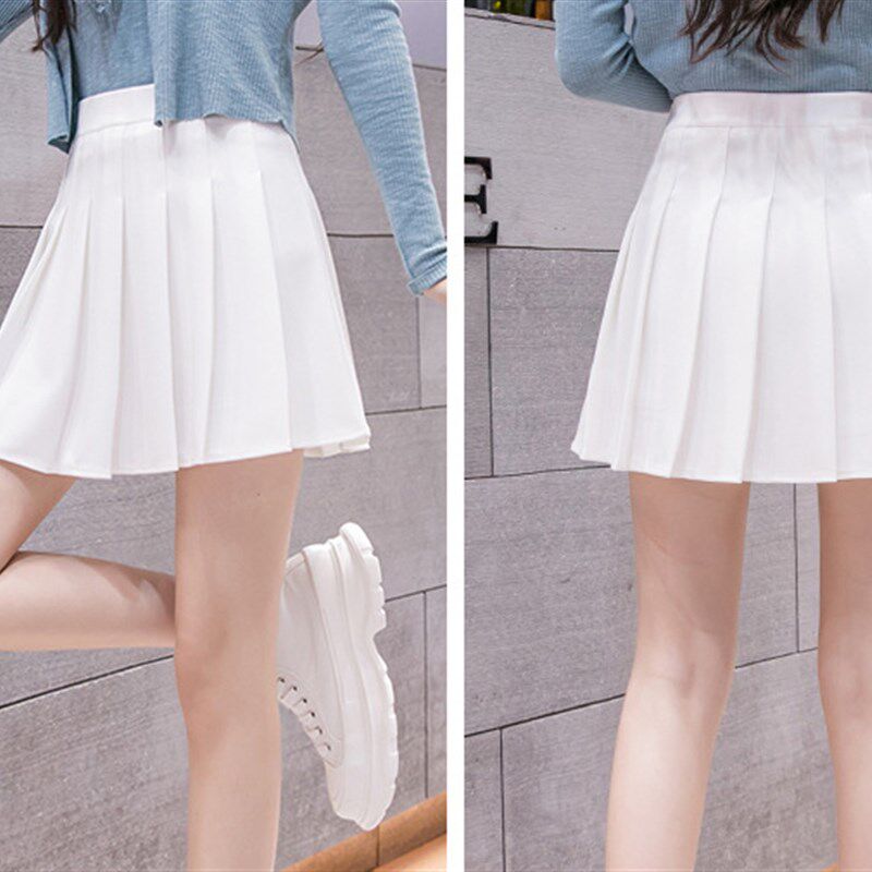 广场舞半身裙中长款 45cm白色百褶裙松紧腰a字短裙跳舞表演演出裙