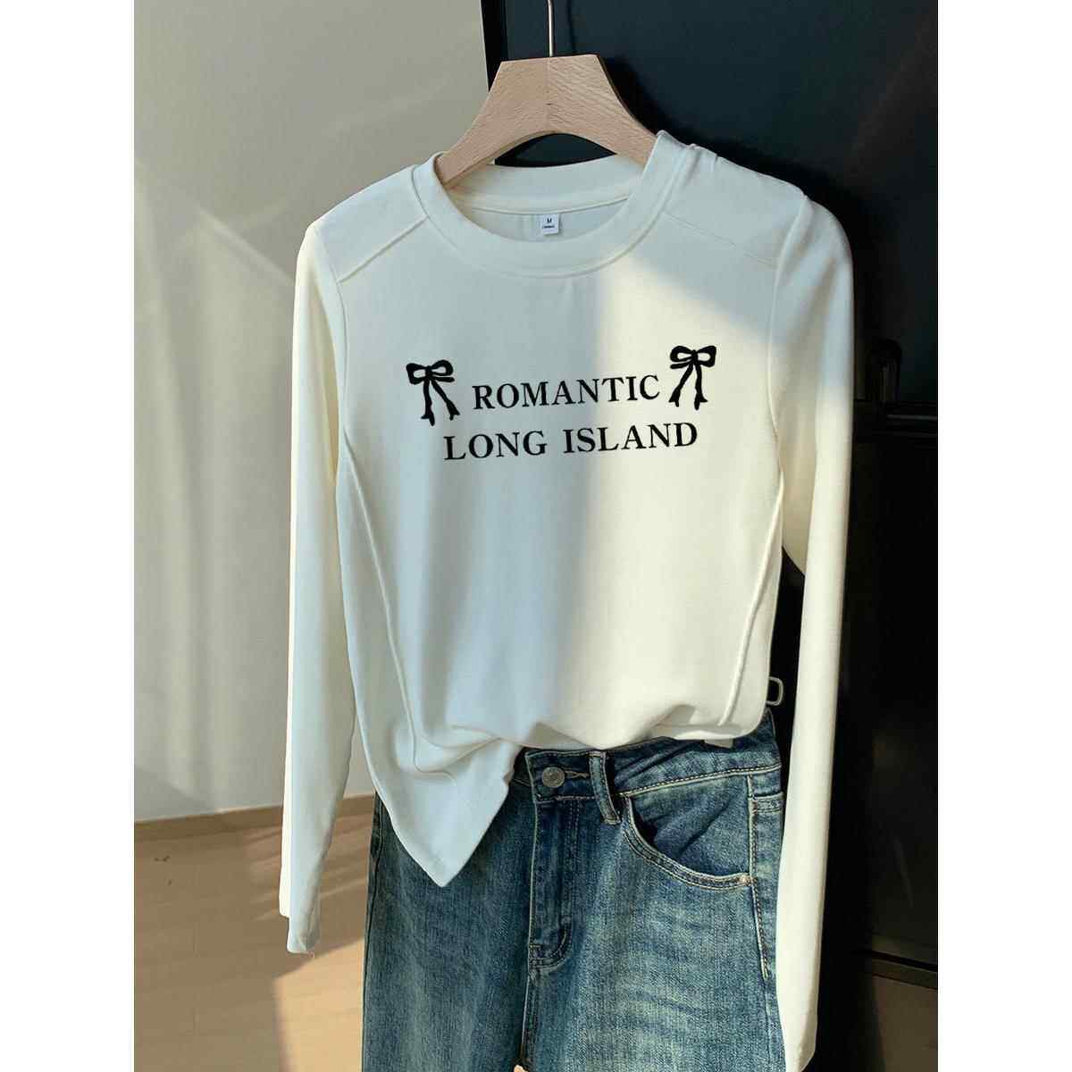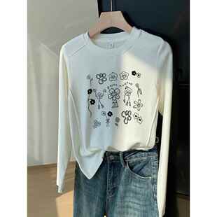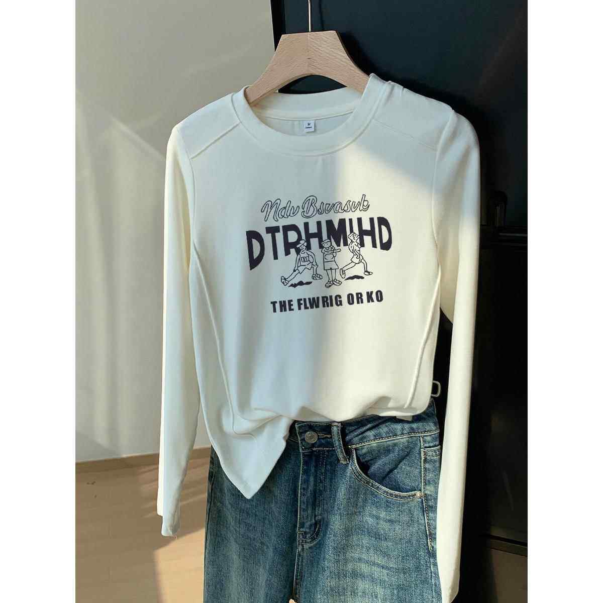 上衣春秋 t恤女弧形下摆设计打底衫 韩国Honey koko⭐正肩纯棉长袖