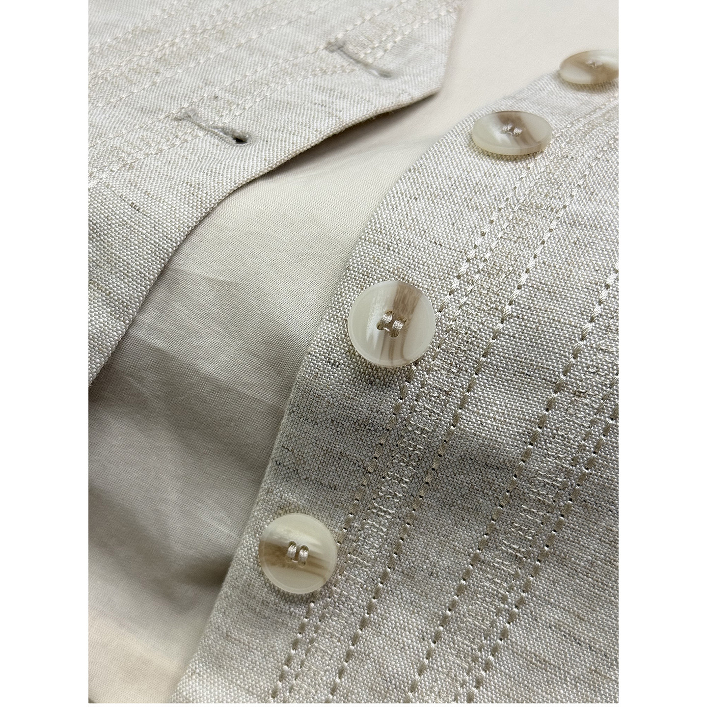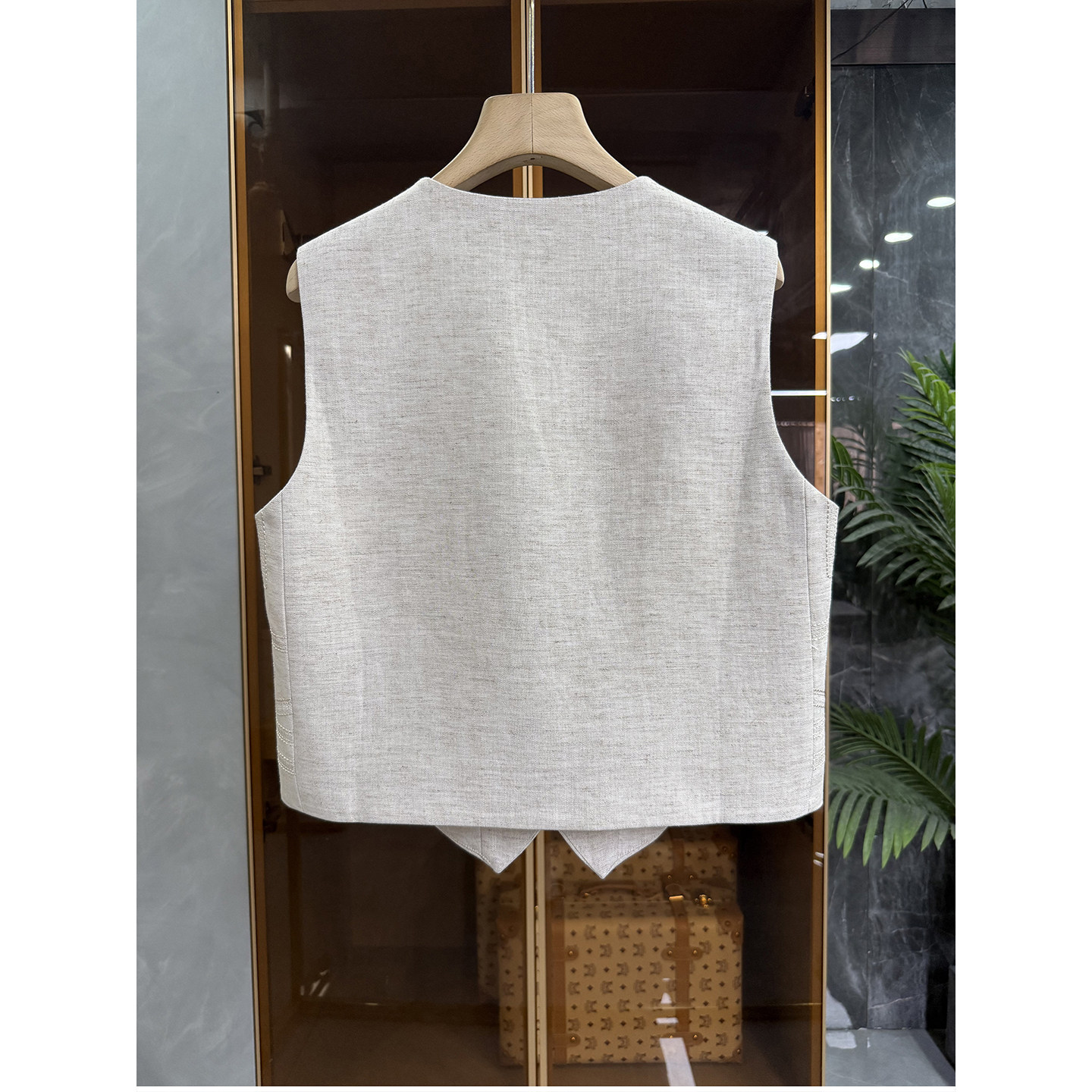 D25225 大Q货 短马甲女 刺绣天丝亚麻V领西装 老钱风高ji感