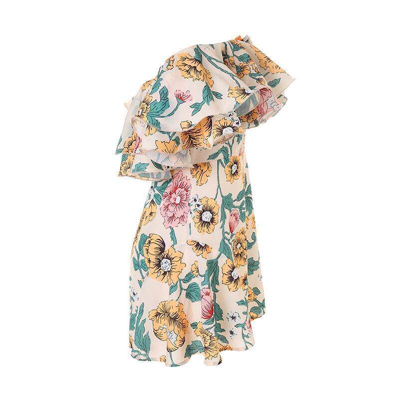 with shoulder连体裤 ruffle off 荷叶边印花露肩 print Jumpsuit