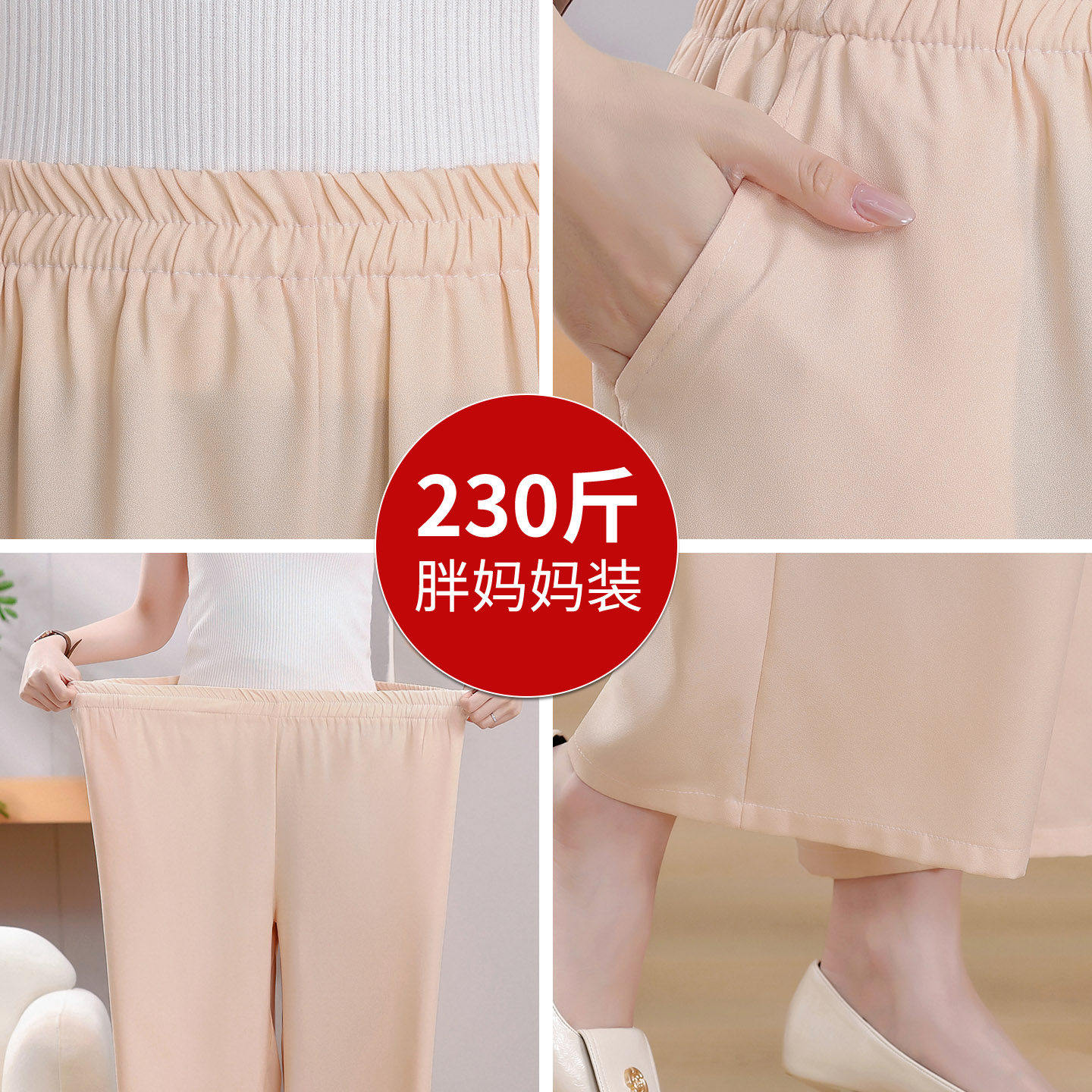 高腰直筒裤 子加肥加大胖妈妈大码 200斤胖妈妈 九分裤 中老年女夏装