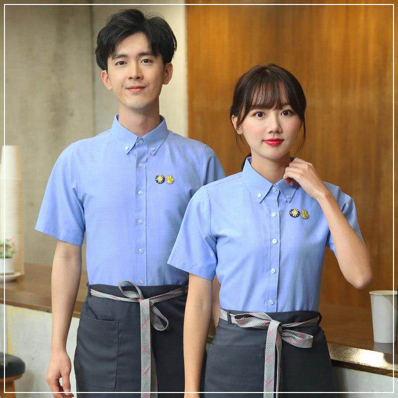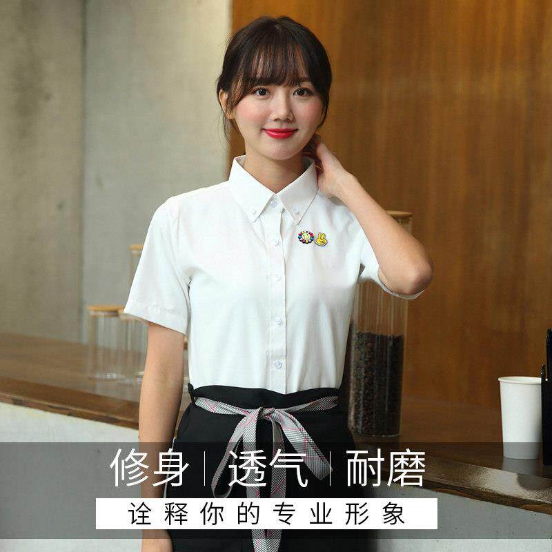 衬衫 餐饮烘焙蛋糕店衬衣定制前台收银工装 女 夏季 服务员工作服短袖
