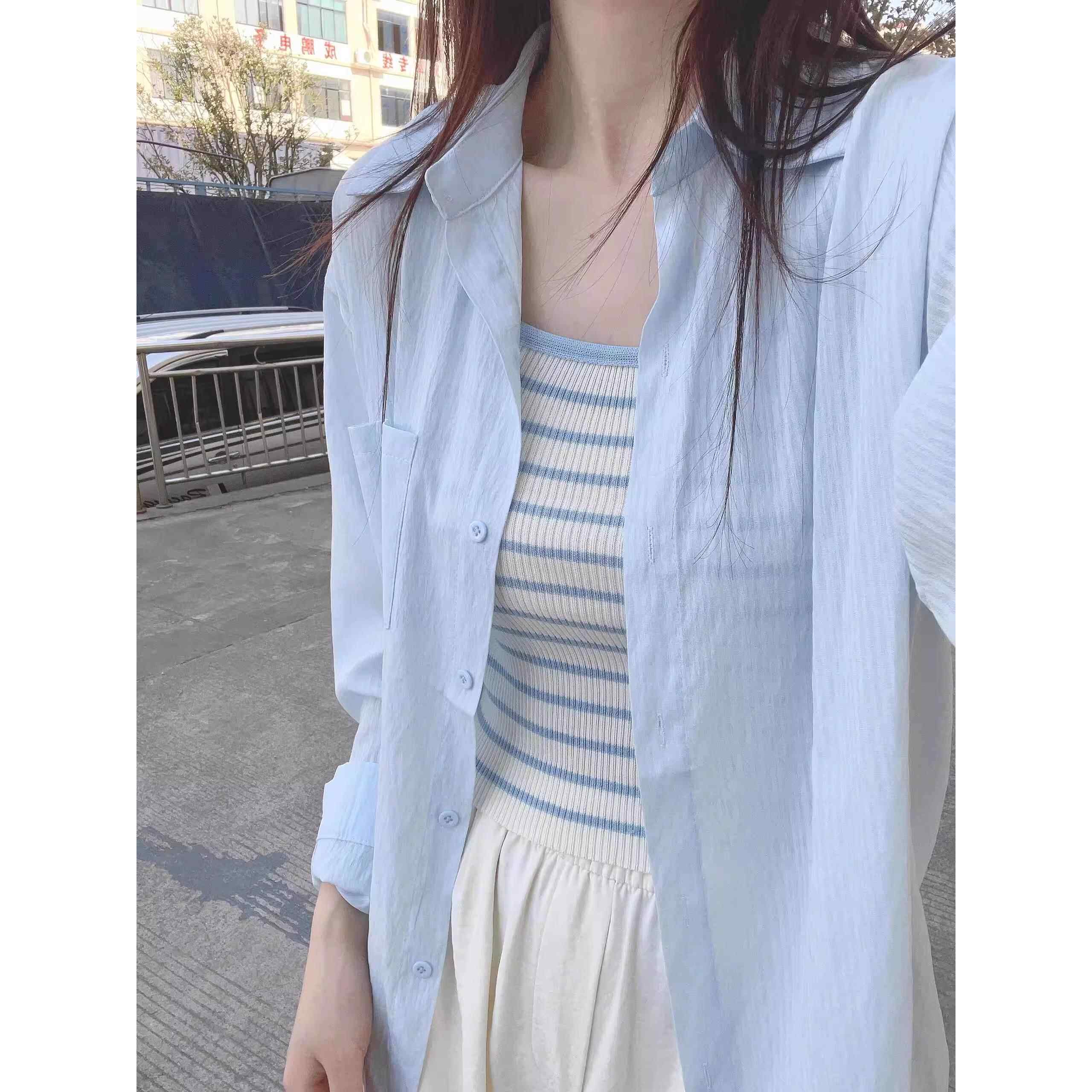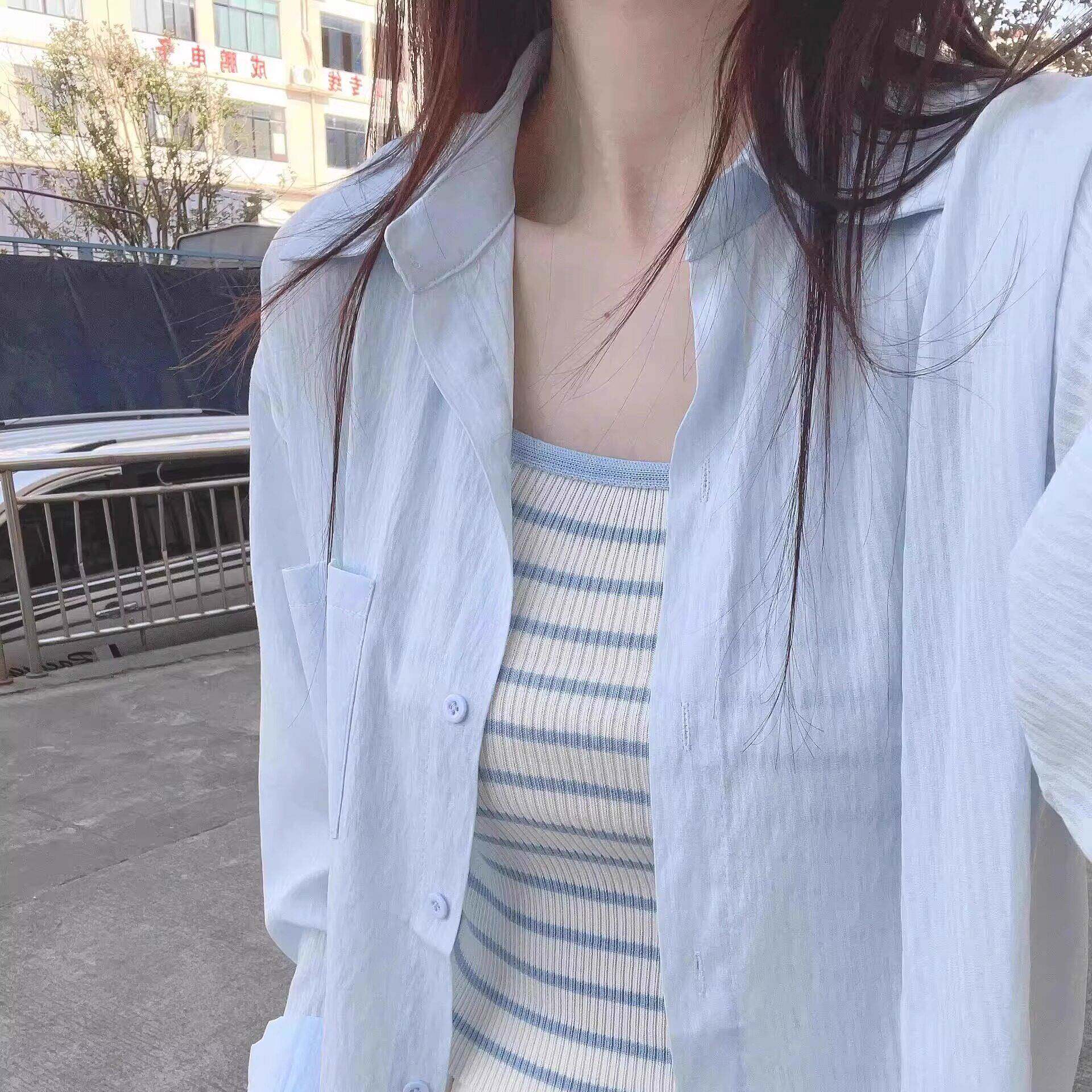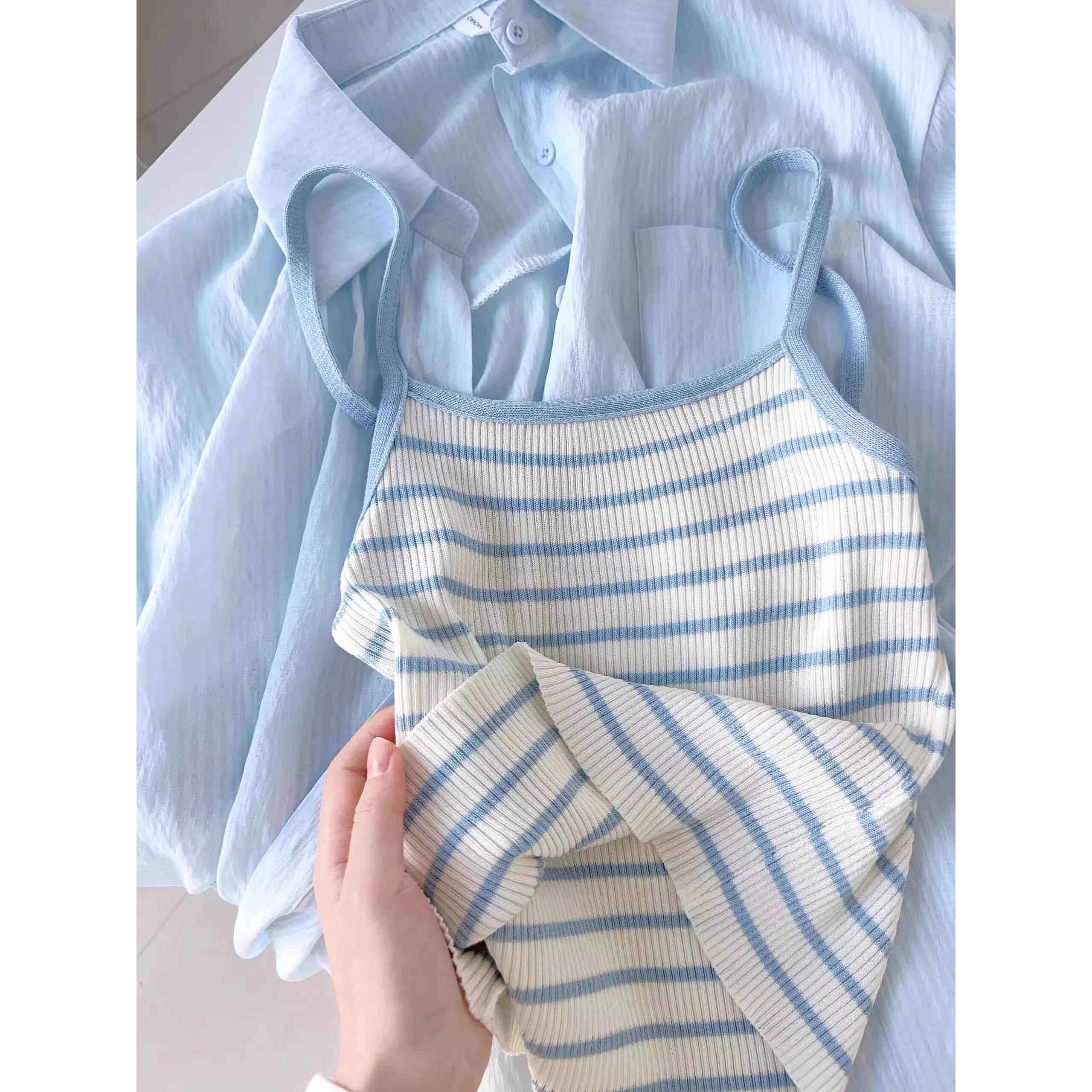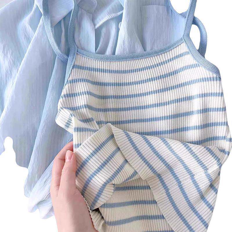 女款 内搭好看多0325r1 蓝色条纹冰丝针织吊带背心夏外穿配衬衫