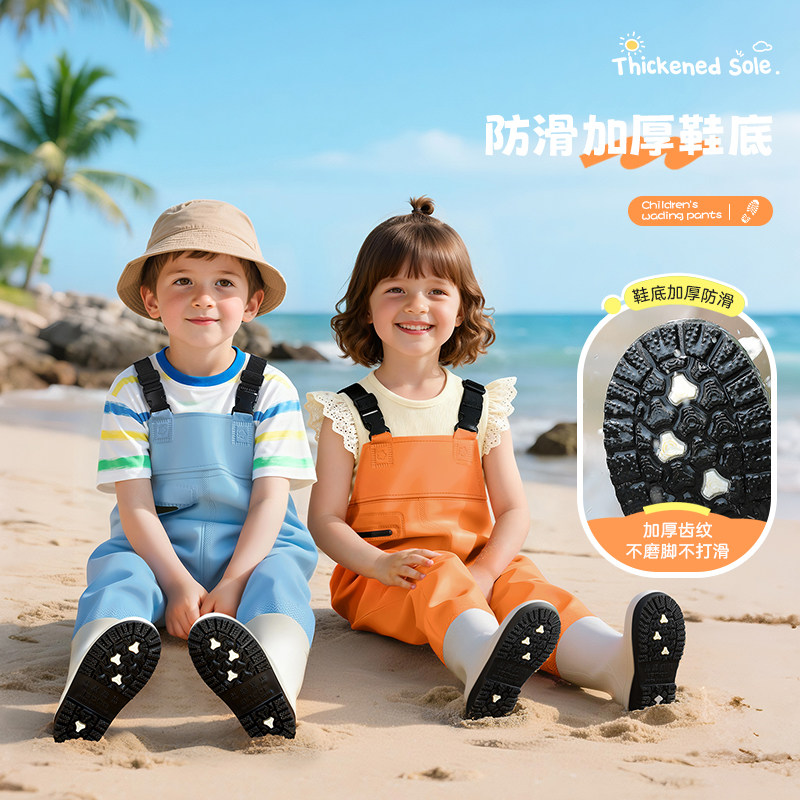 备美赶海连体裤 赶海服幼儿园雨靴一体 儿童玩水连体衣涉水服下水裤