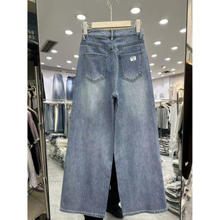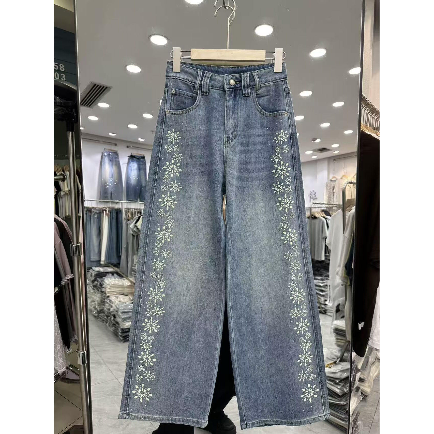 女春夏小众设计感温柔风百搭阔腿休闲裤 印花烫钻牛仔裤 直筒裤