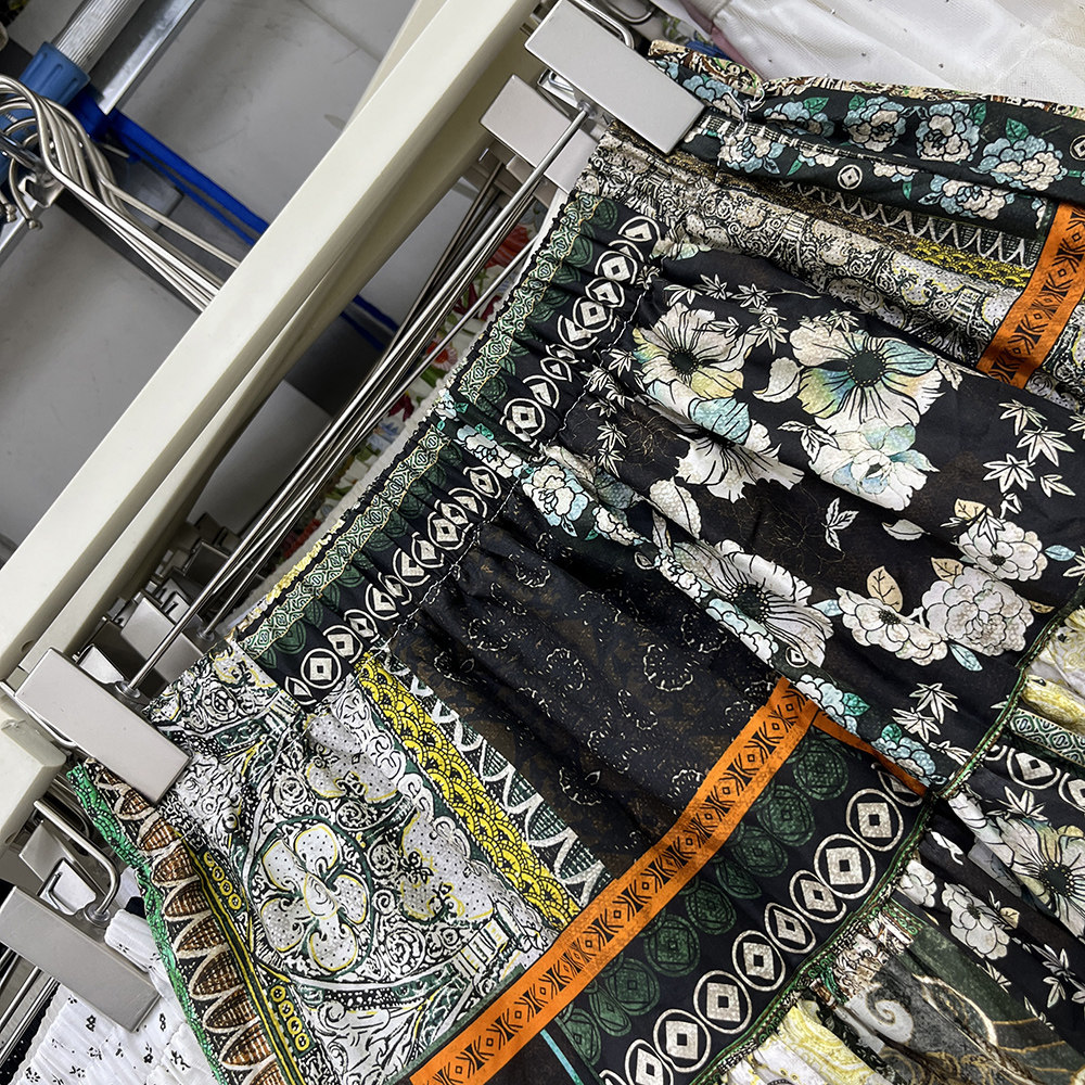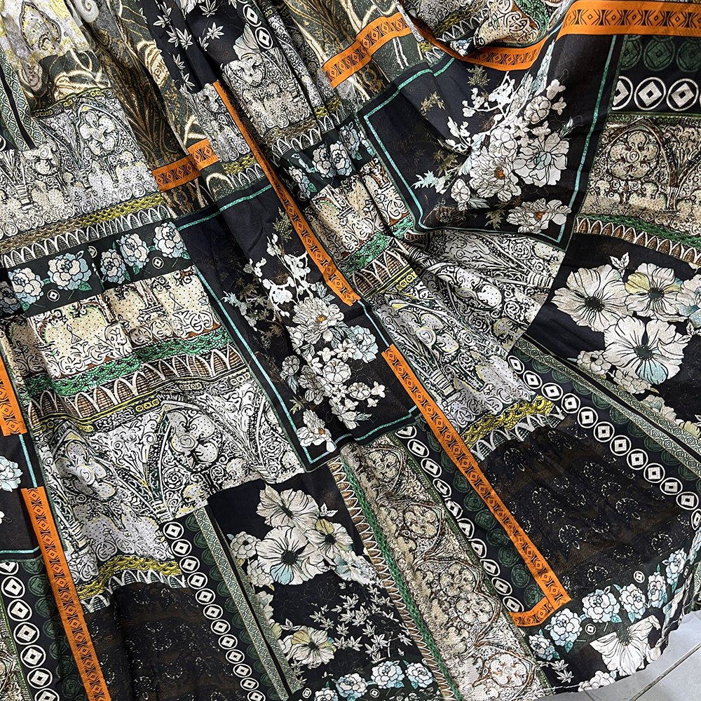 民族风撞色印花半身裙女松紧腰拼接A字大摆中长裙波西米亚风裙子