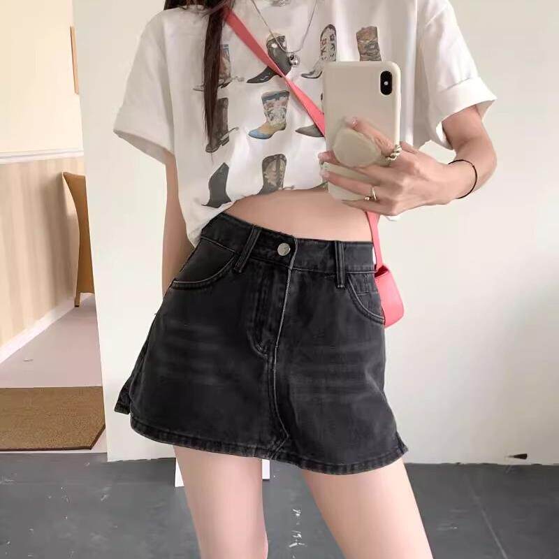 包臀a字短裤 大码 显瘦美式 女春夏2024新款 胖mm辣妹风黑色牛仔裙裤