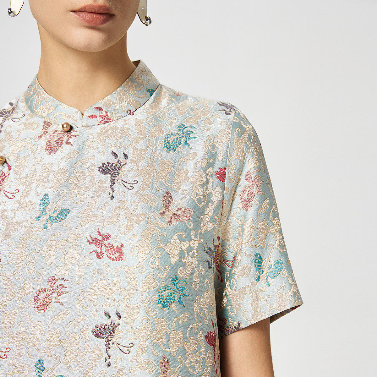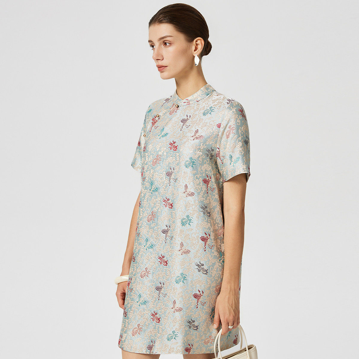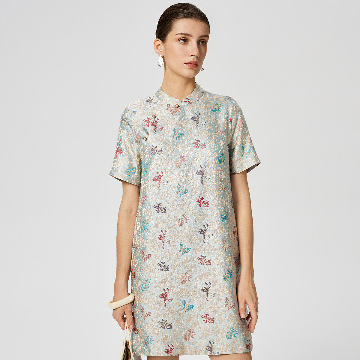 新中式 King 新款 鹿王夏季 气质显瘦旗袍女国风桑蚕丝连衣裙 Deer