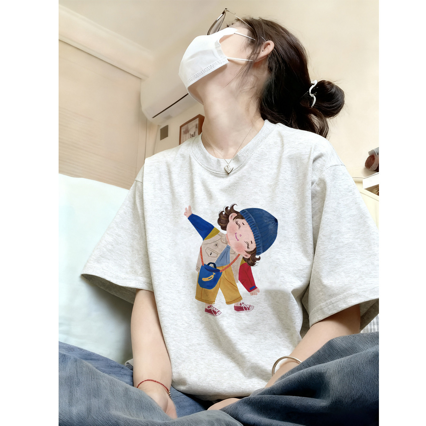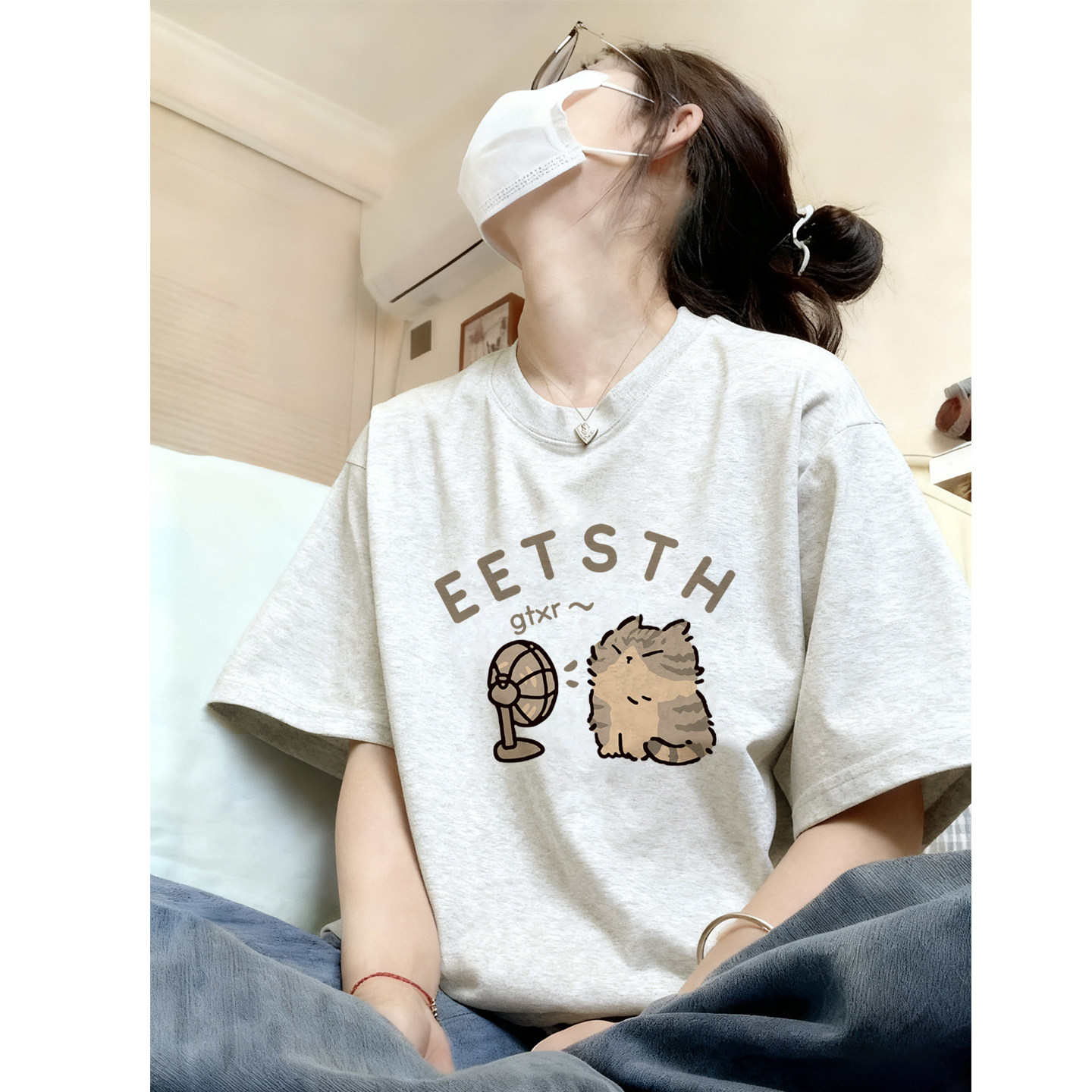 t恤女2026新款 圆领美式 夏季 女装 上衣 纯棉宽松慵懒风大码 灰色短袖