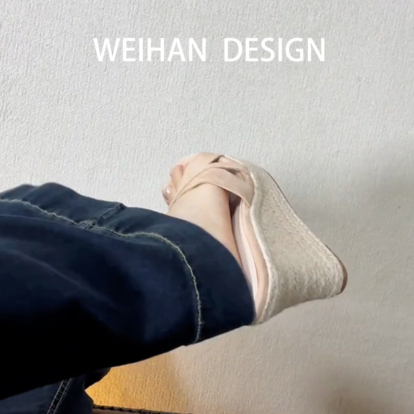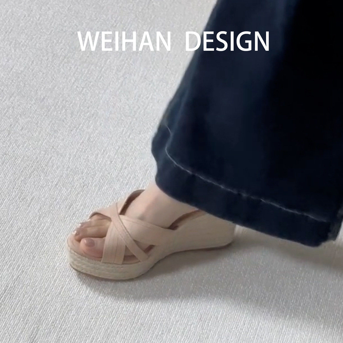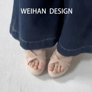 露趾高跟凉鞋 女夏外穿厚底凉拖鞋 一字拖罗马草编坡跟拖鞋 羊皮版
