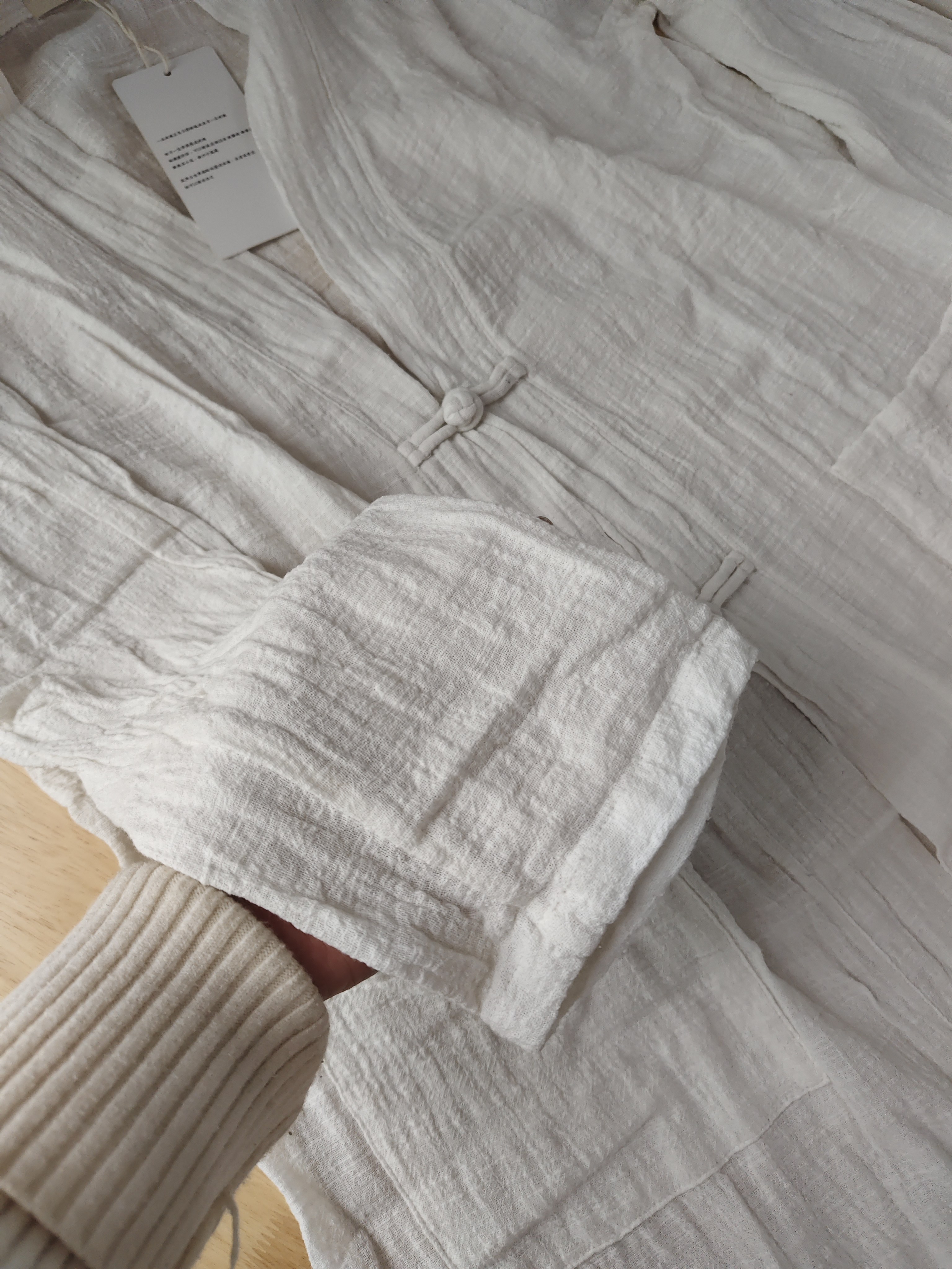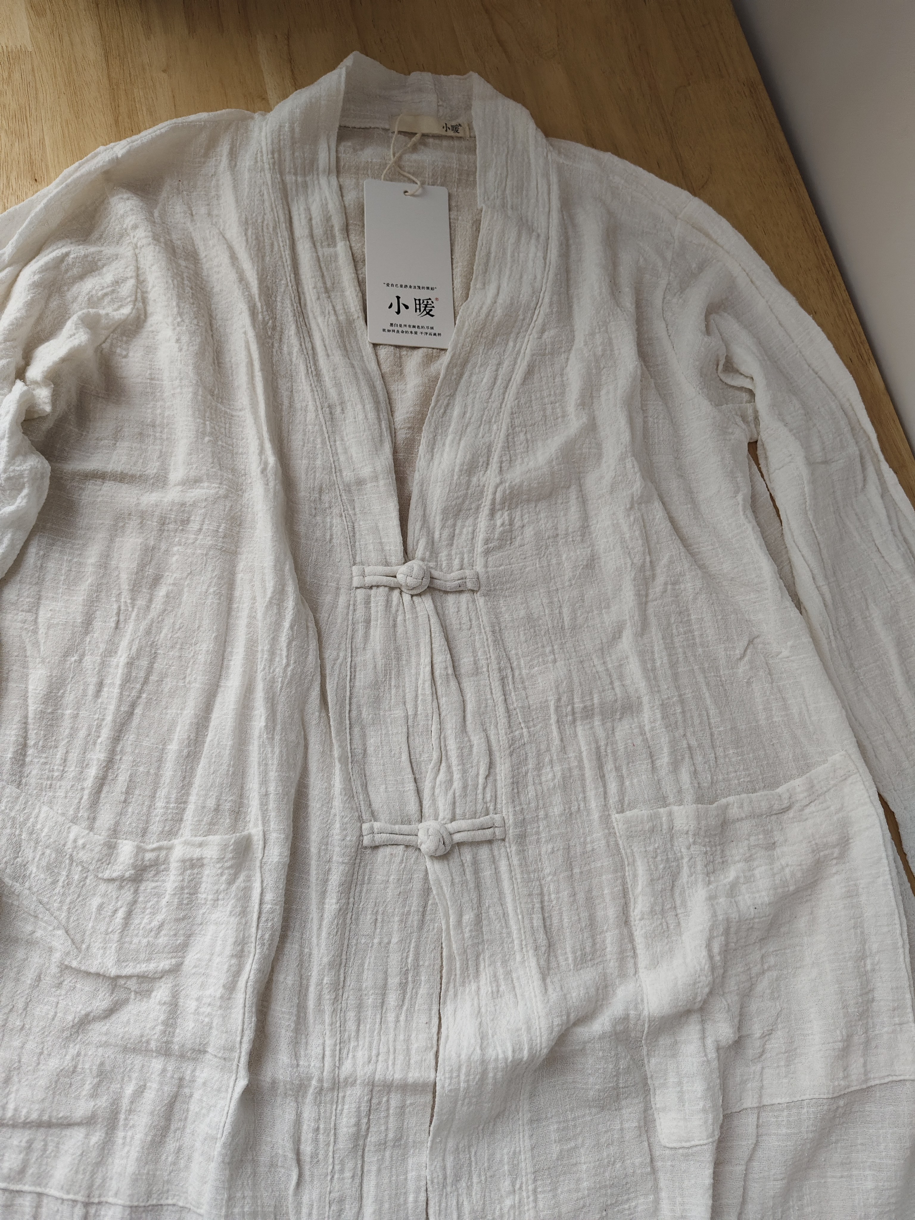 外套 盘扣开衫 特清 文艺素雅白色棉麻中长款