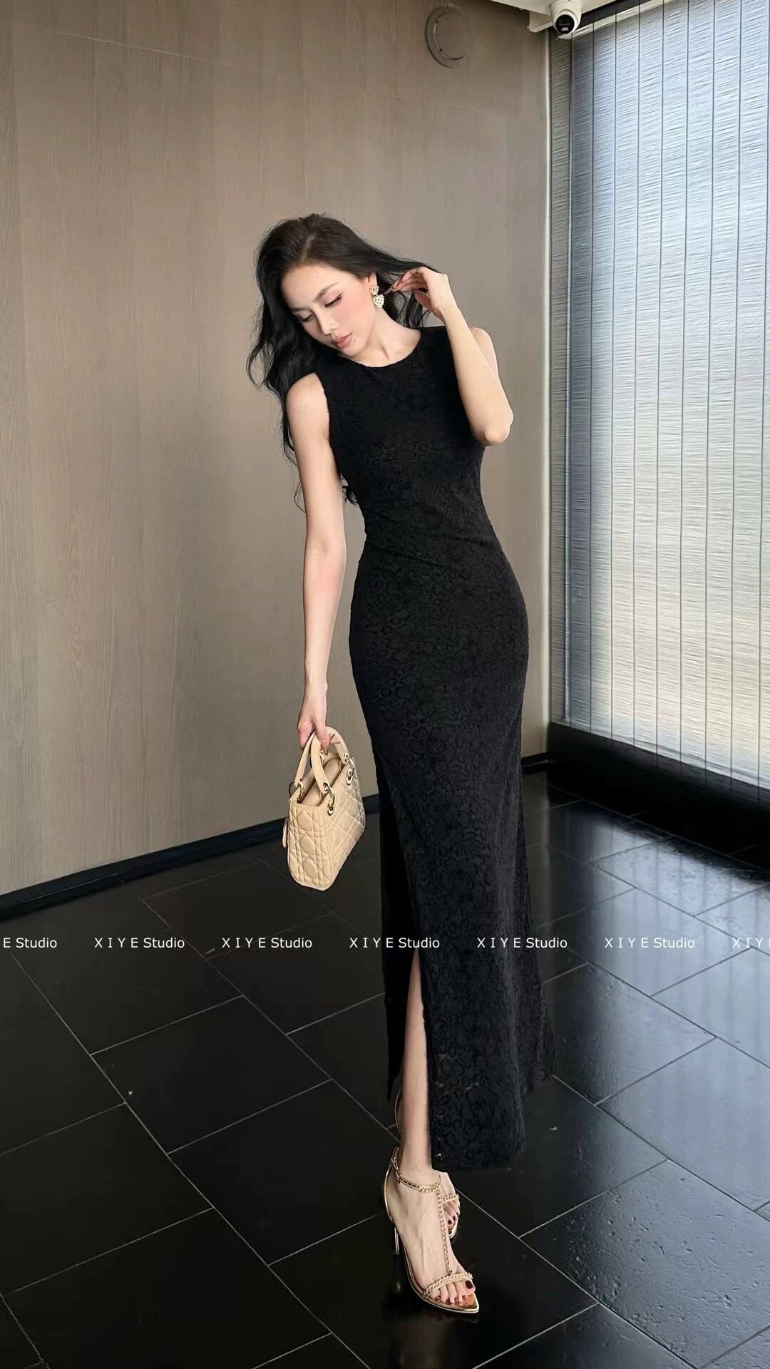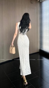 气质提花长裙内搭裙 设计感收腰修身 法式 绿色吊带连衣裙女夏季