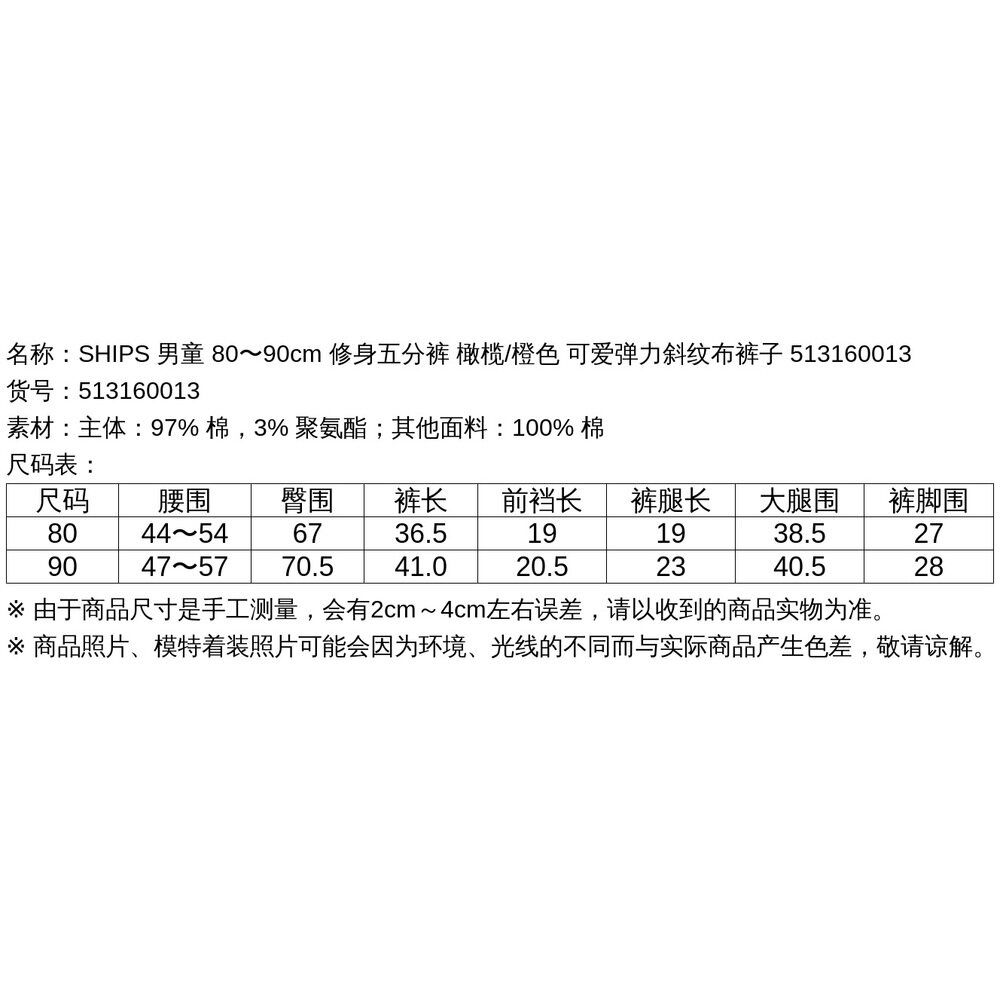 修身 80〜90cm 五分裤 橄榄 可爱弹力斜纹 日本直邮SHIPS 橙色 男童