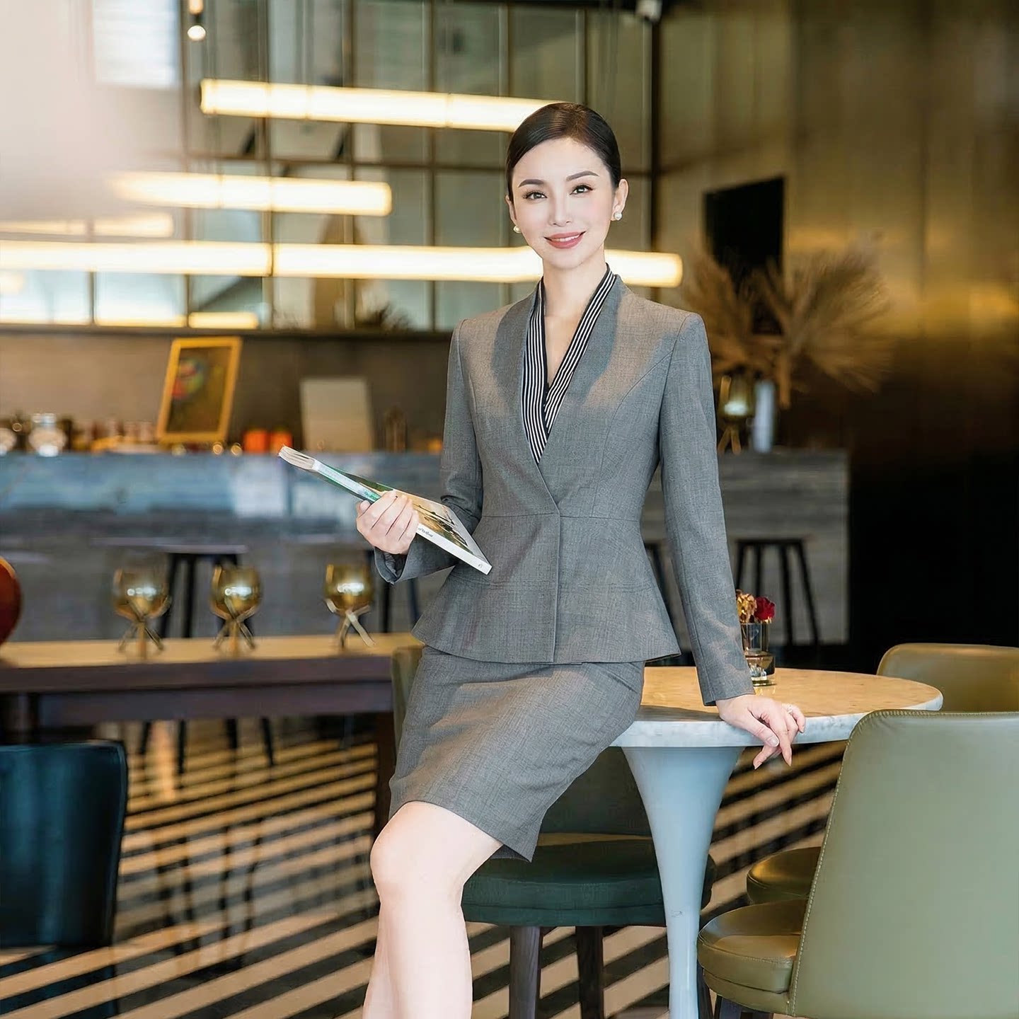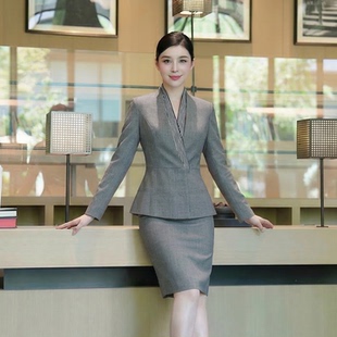 职业装 女长袖 OL通勤两件套高级感工作服 套装 灰色西装