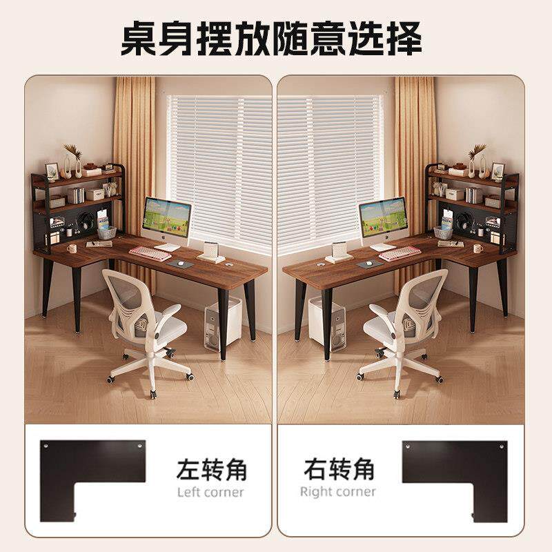 实木转角电脑桌家用卧室书桌学习桌双人简易拐角电竞桌办公工作台