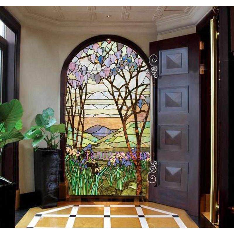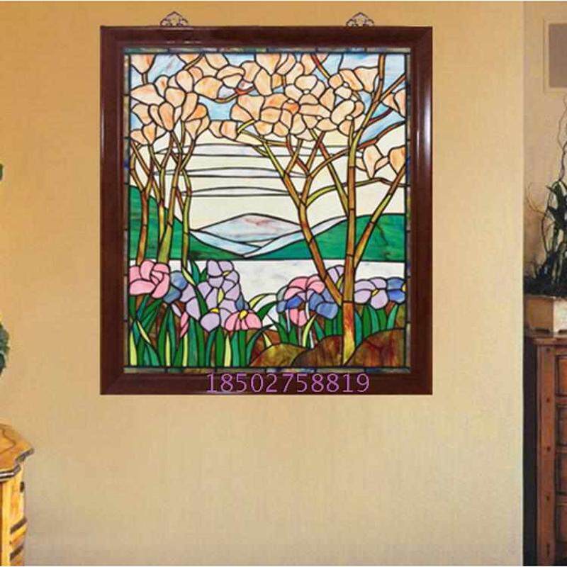 钢化艺术玻璃电视背景墙门风景隔断欧式 屏风大气芯花香双面透光