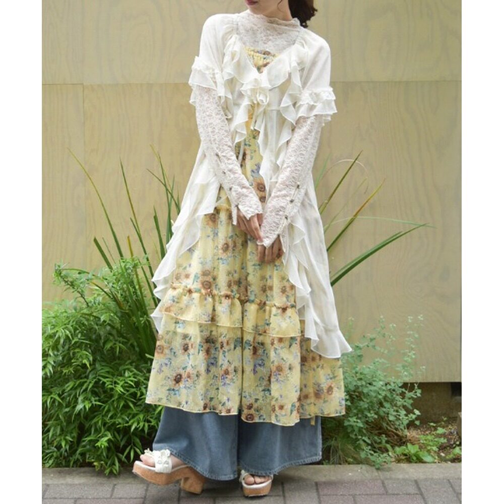 口飘逸层叠连衣裙 女士蕾丝袖 CI51X02 femme 日本直邮axes