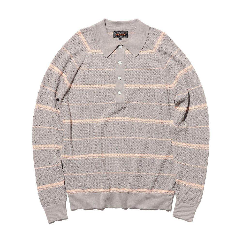 Weave Stripe Knit 日本直邮BEAMS 针织Polo衫 Basket Polo PLUS