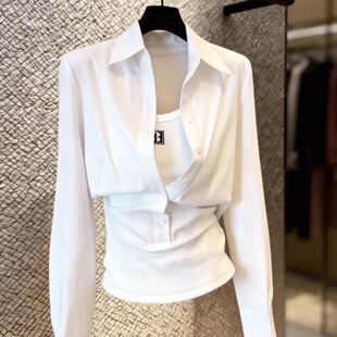 衬衫 有型气质长袖 显瘦白色假两件上衣女2026春季 休闲百搭日常修身
