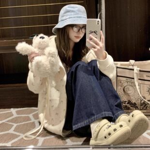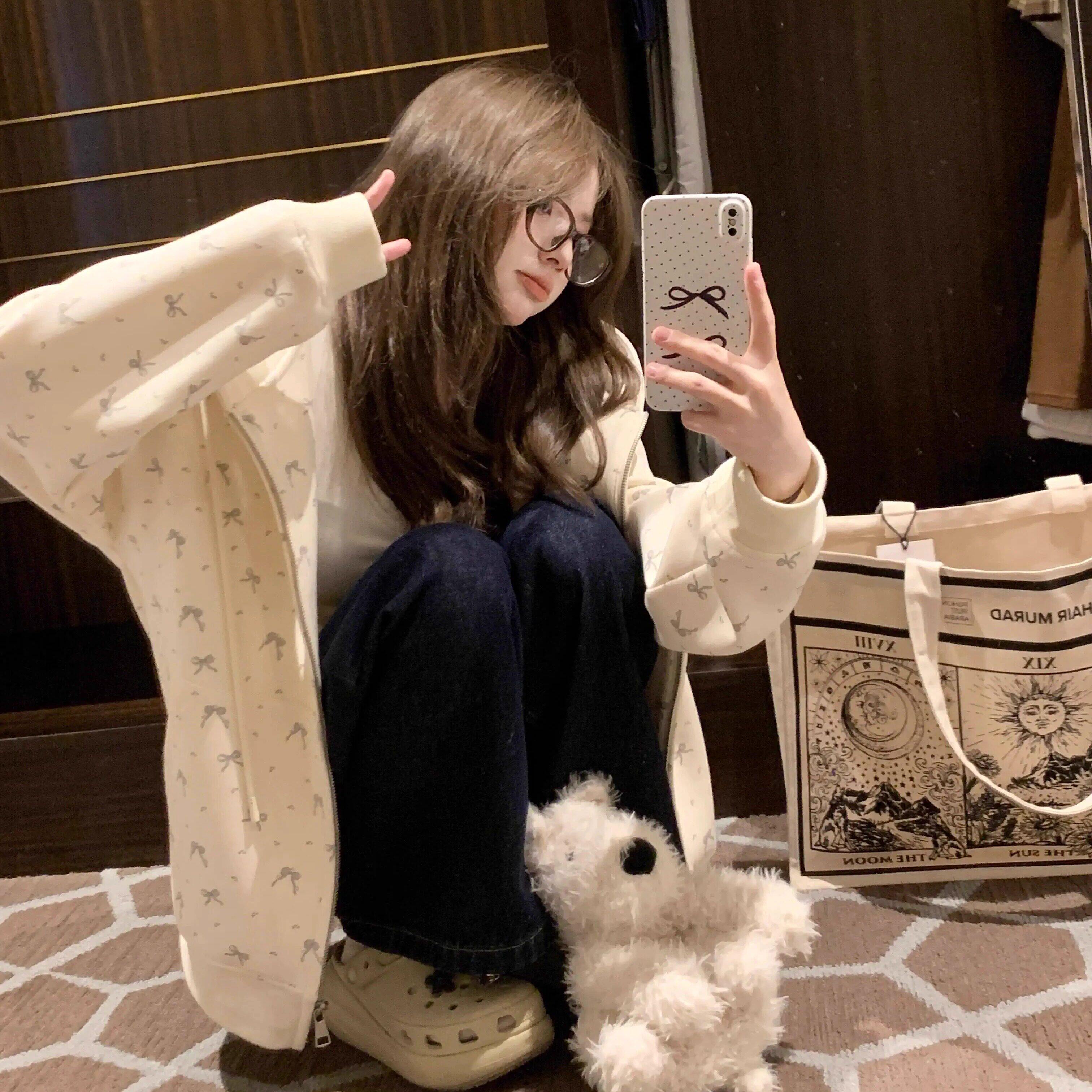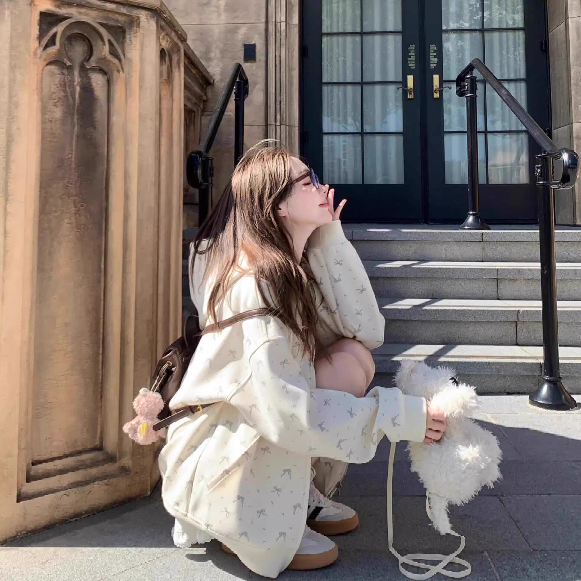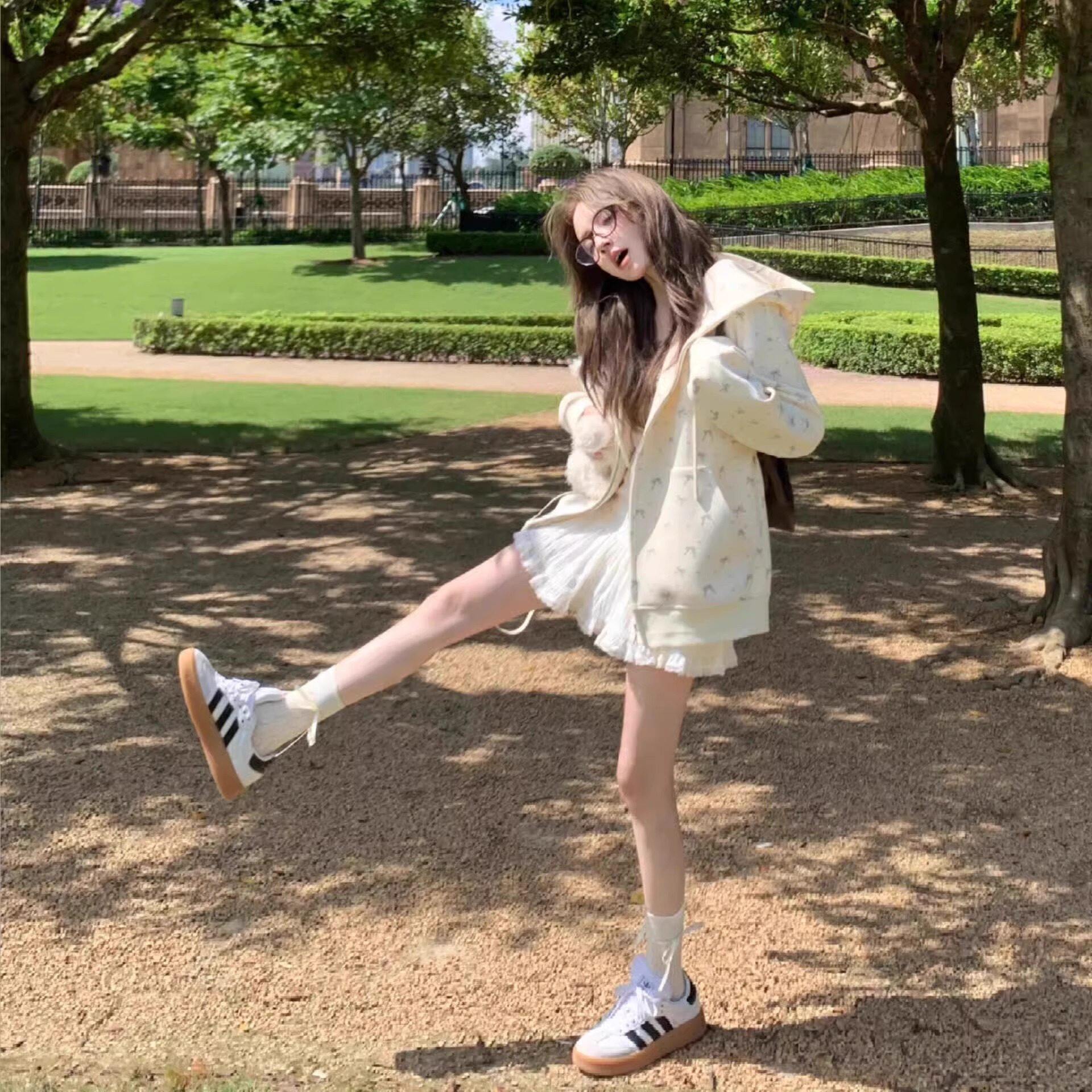 宽松休闲 奶fufu学生连帽碎花卫衣外套女2025秋开 炼 拉炼 学院 衫