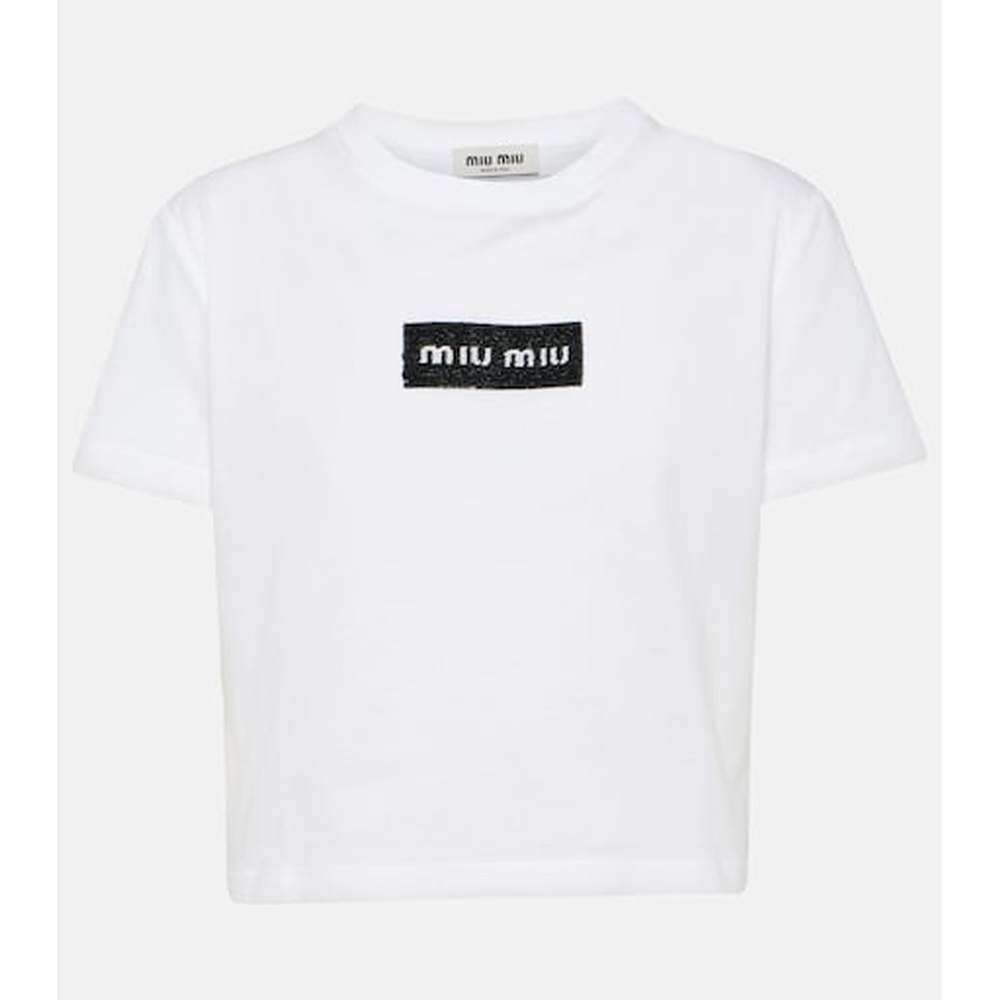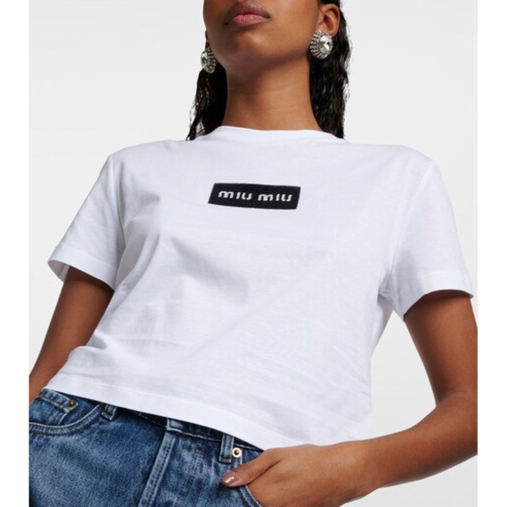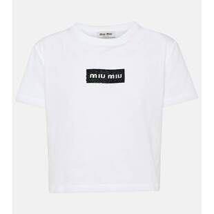 女士 缪缪 徽标棉质针织T恤 white白色 香港直邮Miu 舒适时尚 Miu