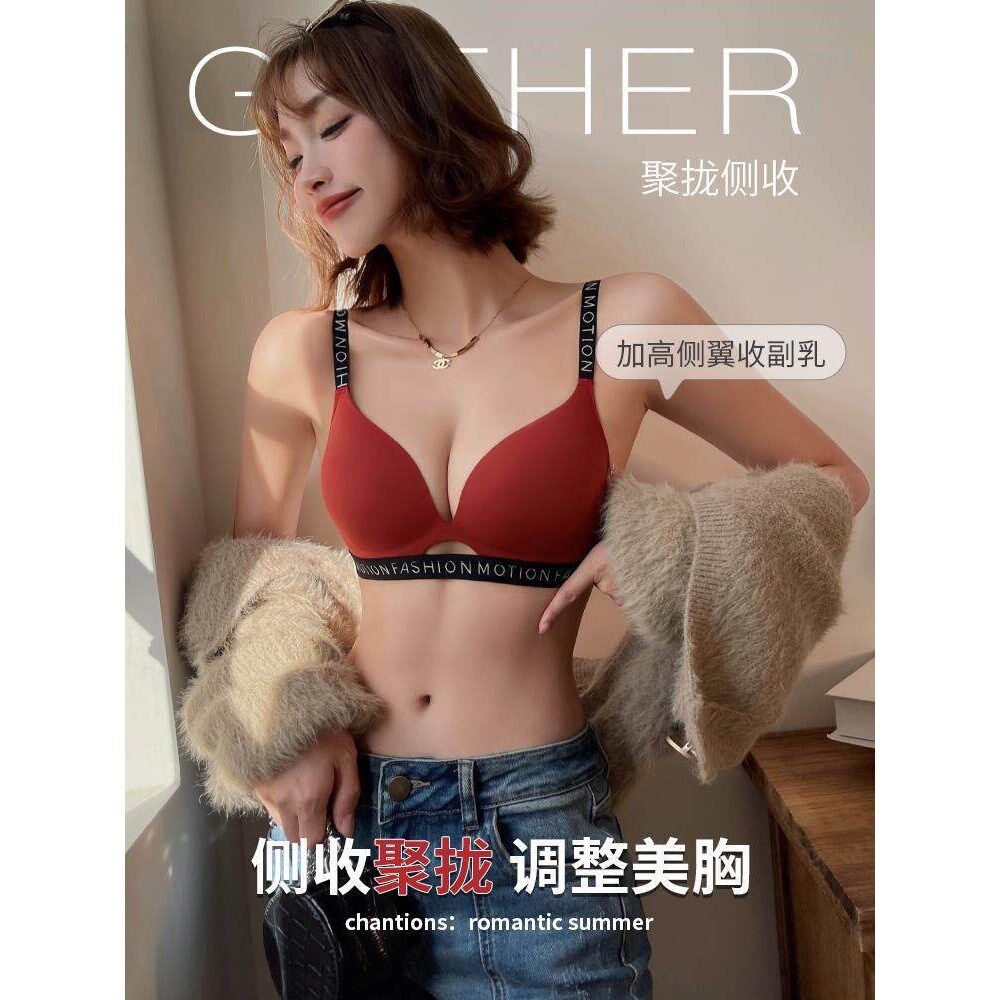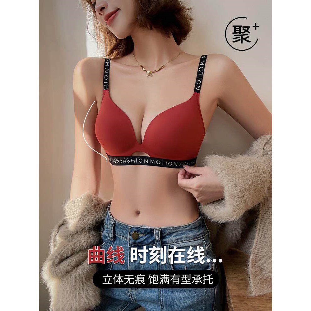 GULIBERRY无痕红色内衣女本命年薄款 结婚无钢圈小胸聚拢文胸套装