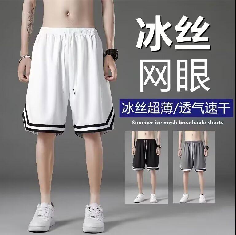 男速干 跑步健身宽松休闲网眼空调裤 冰丝五分裤 薄款 夏季 运动短裤