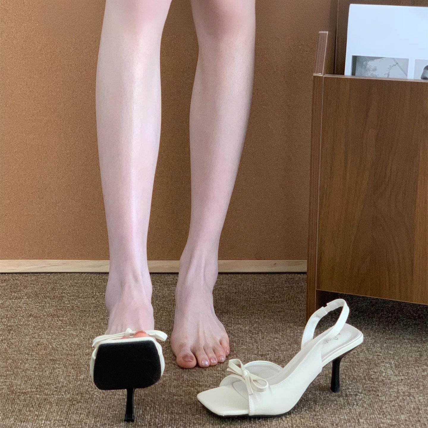 淑女风设计感露趾凉鞋 甜美蝴蝶结碎花气质方头高跟鞋 欧式 新款 夏季