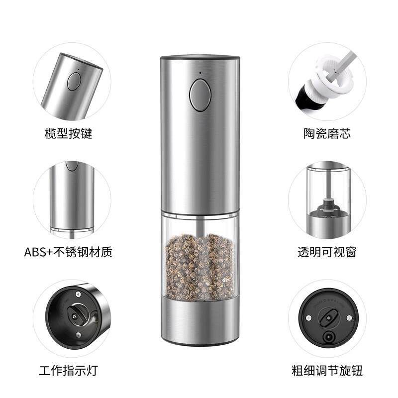 电动胡椒研磨器黑胡椒粉花椒海盐家用充电调料研磨瓶粉机调味瓶罐
