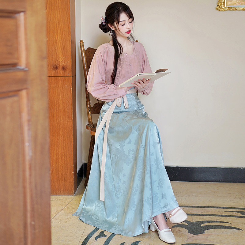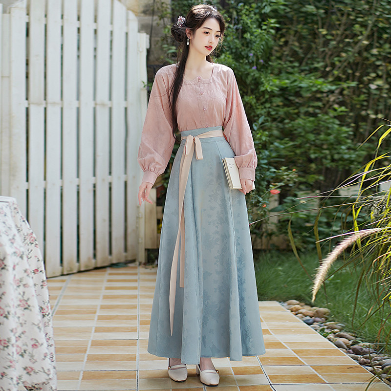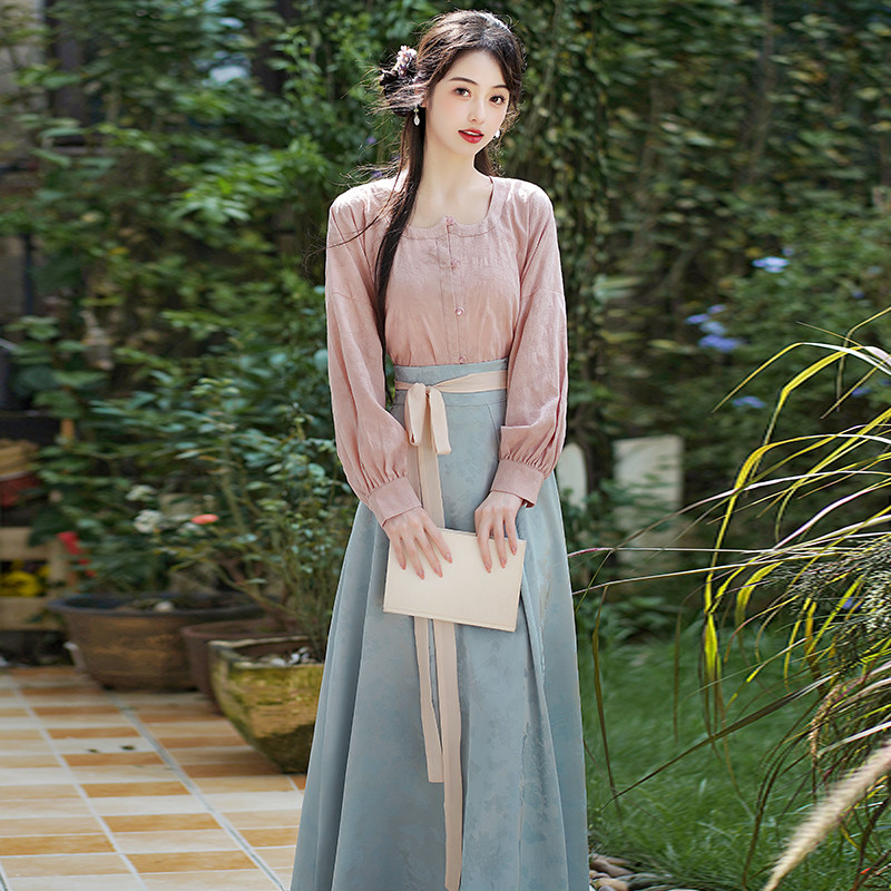 衬衣八破裙显瘦套装 春夏长袖 唐制短衫 2026汉服中式