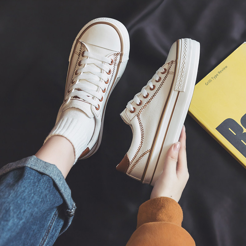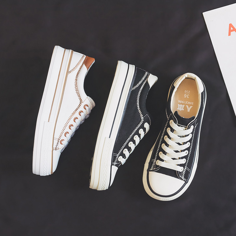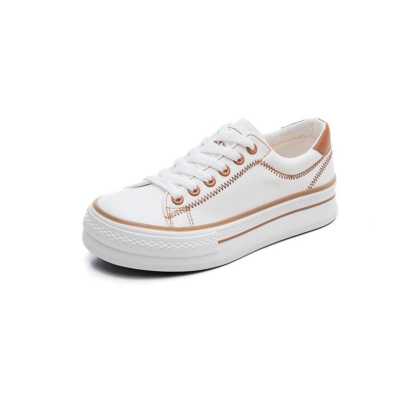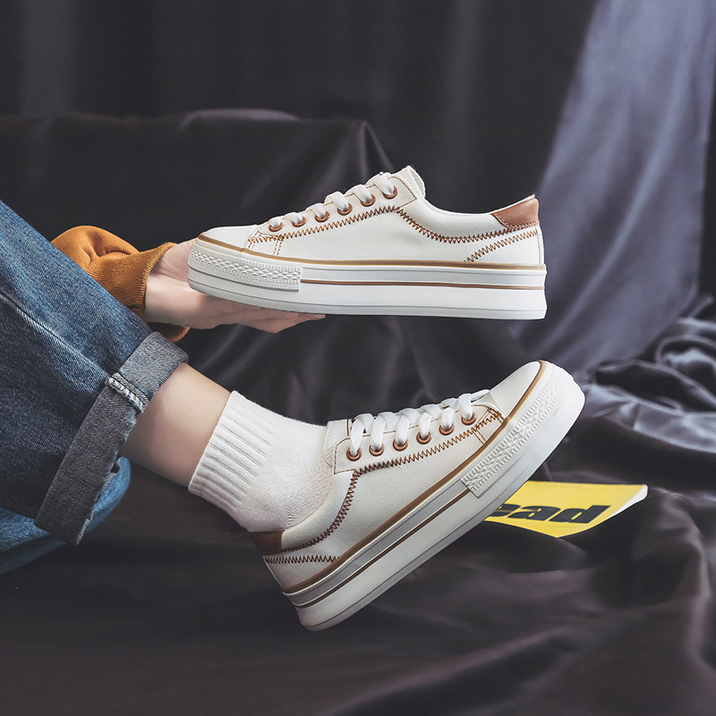 夏款 人本韩版 学生板鞋 女百搭休闲系带帆布鞋 ins潮 厚底透气小白鞋