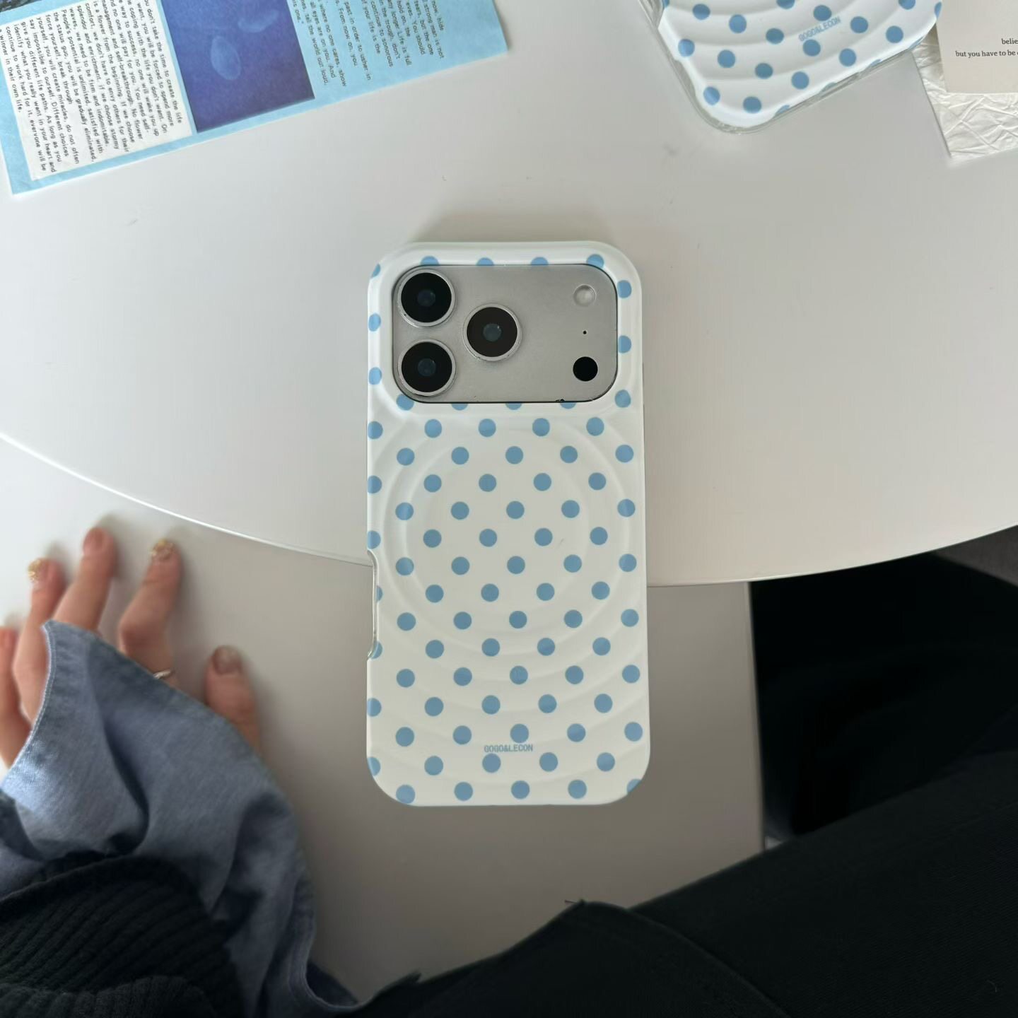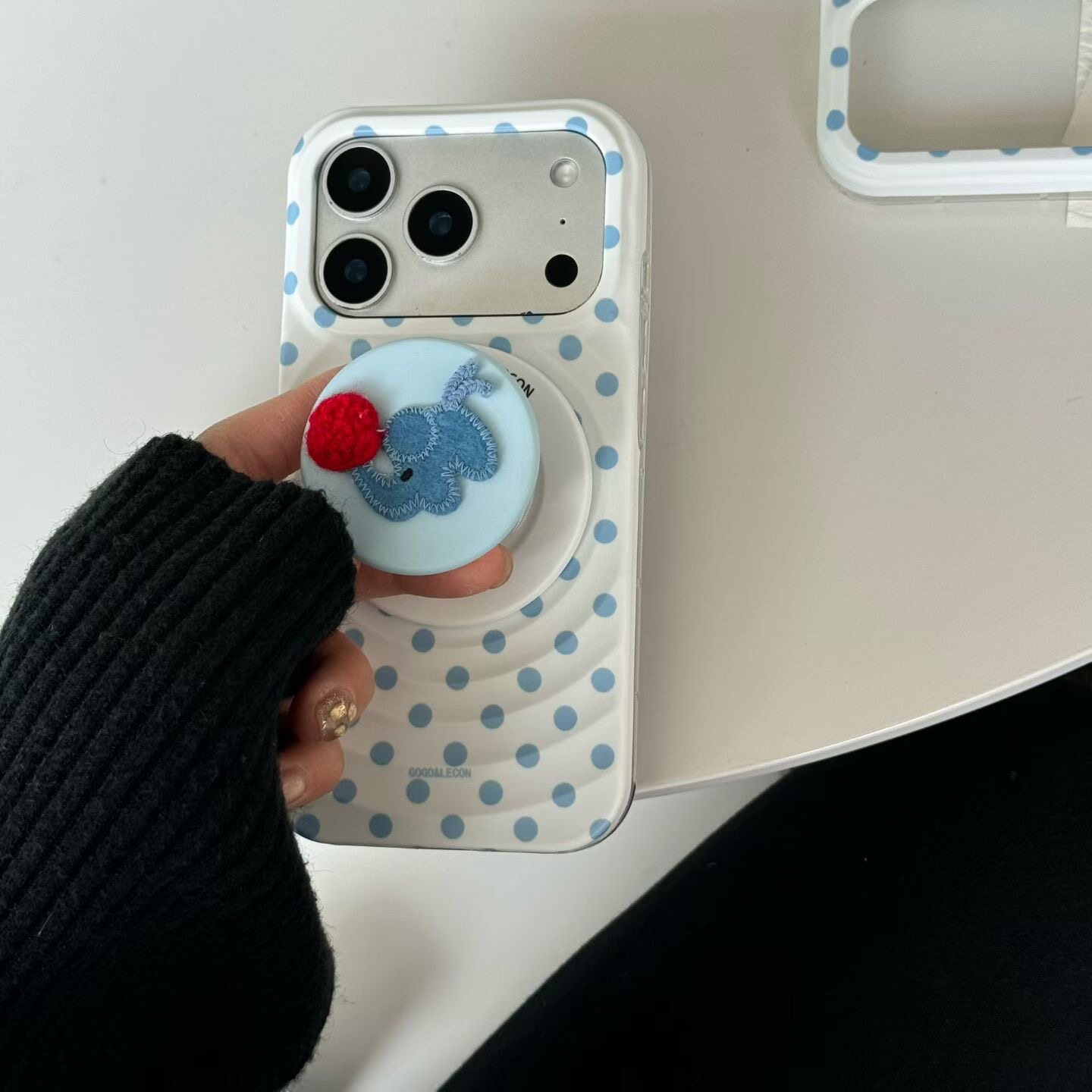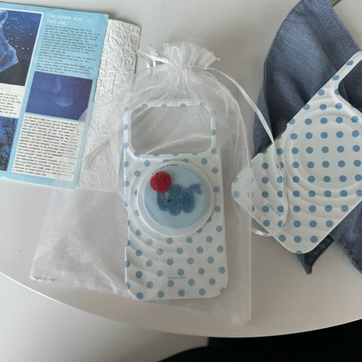 ins日韩波点蓝波点小象磁吸支架iphone17promax手机壳15新款 17pro全包13防摔小众14promax波漾保护套