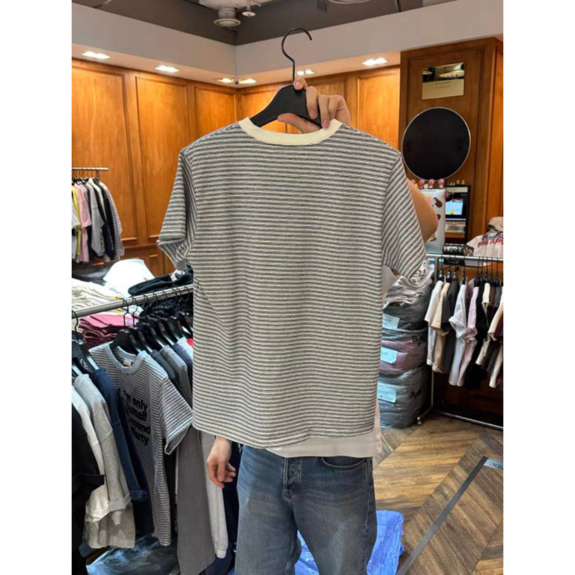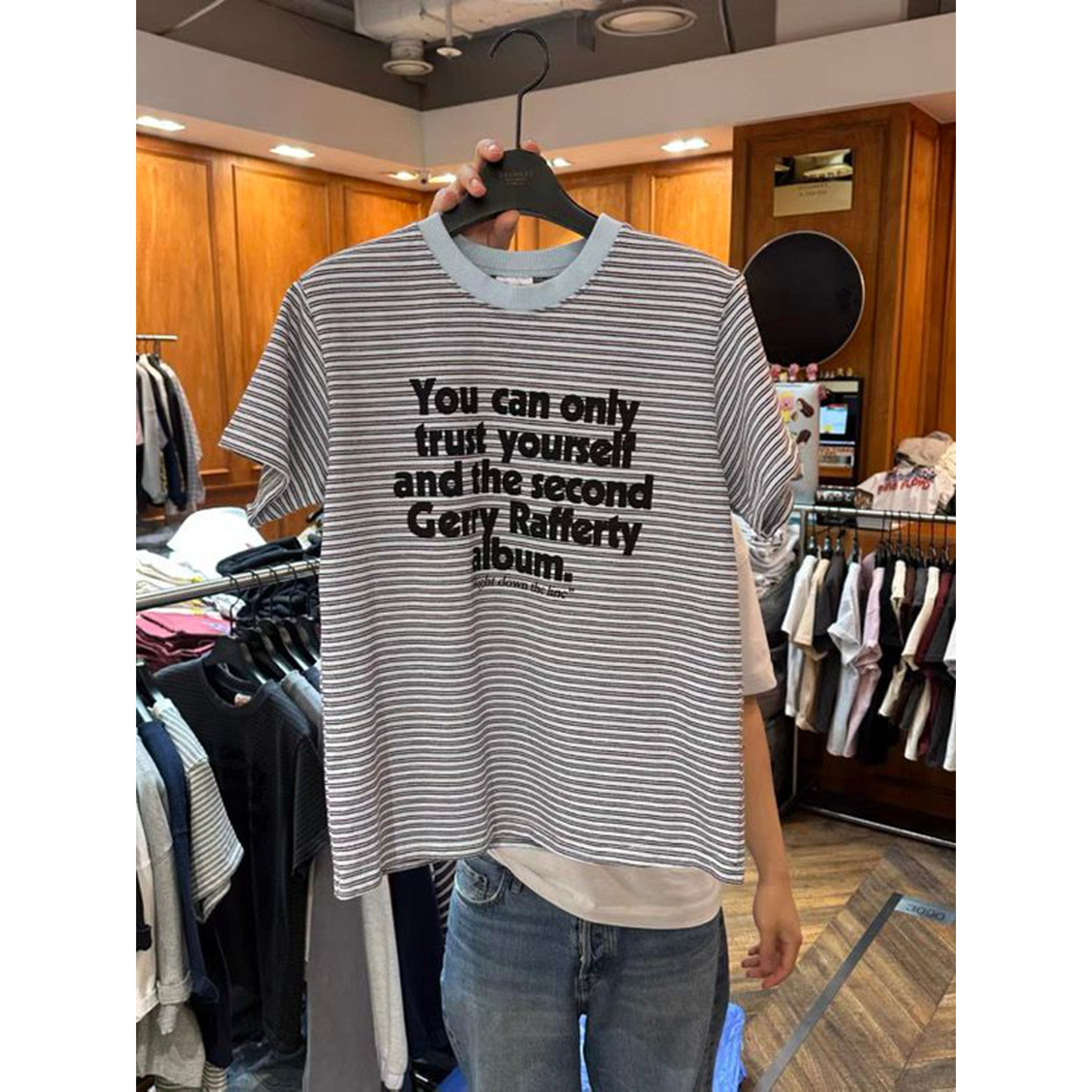 T恤 圆领拼色条纹字母印花短袖 现韩国东大门代购 GARMENT2026春时尚