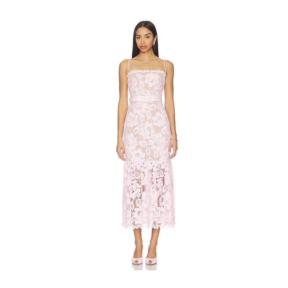 粉色钩花蕾丝中长连衣裙 1h可退 女士 Portrait SS2 香港直邮Self