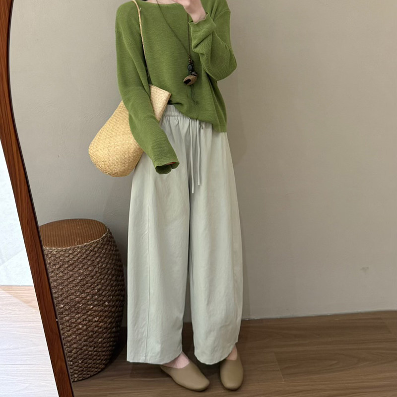 空气显瘦垂感日常通勤简约风长裤 话里松弛感直筒系带裤 2026夏新款