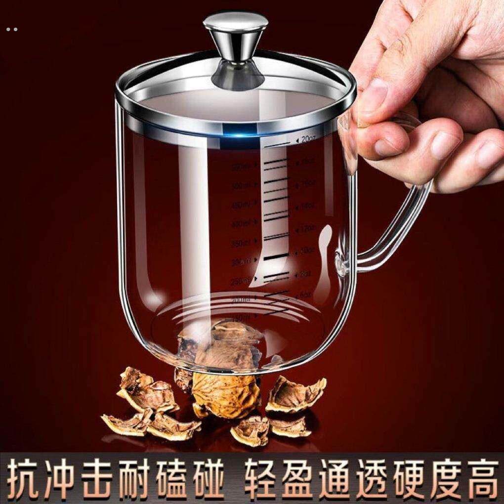 双刻度杯子透明耐高温计量杯带盖高硼硅玻璃茶杯喝水杯手柄