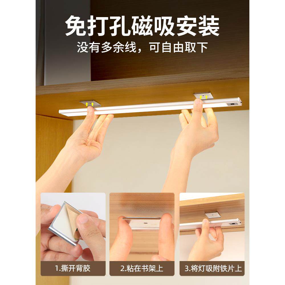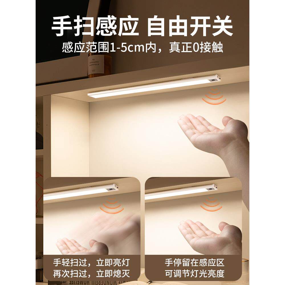手扫橱柜灯可充电无线磁性厨房超薄智能人体传感器灯衣柜Led灯条