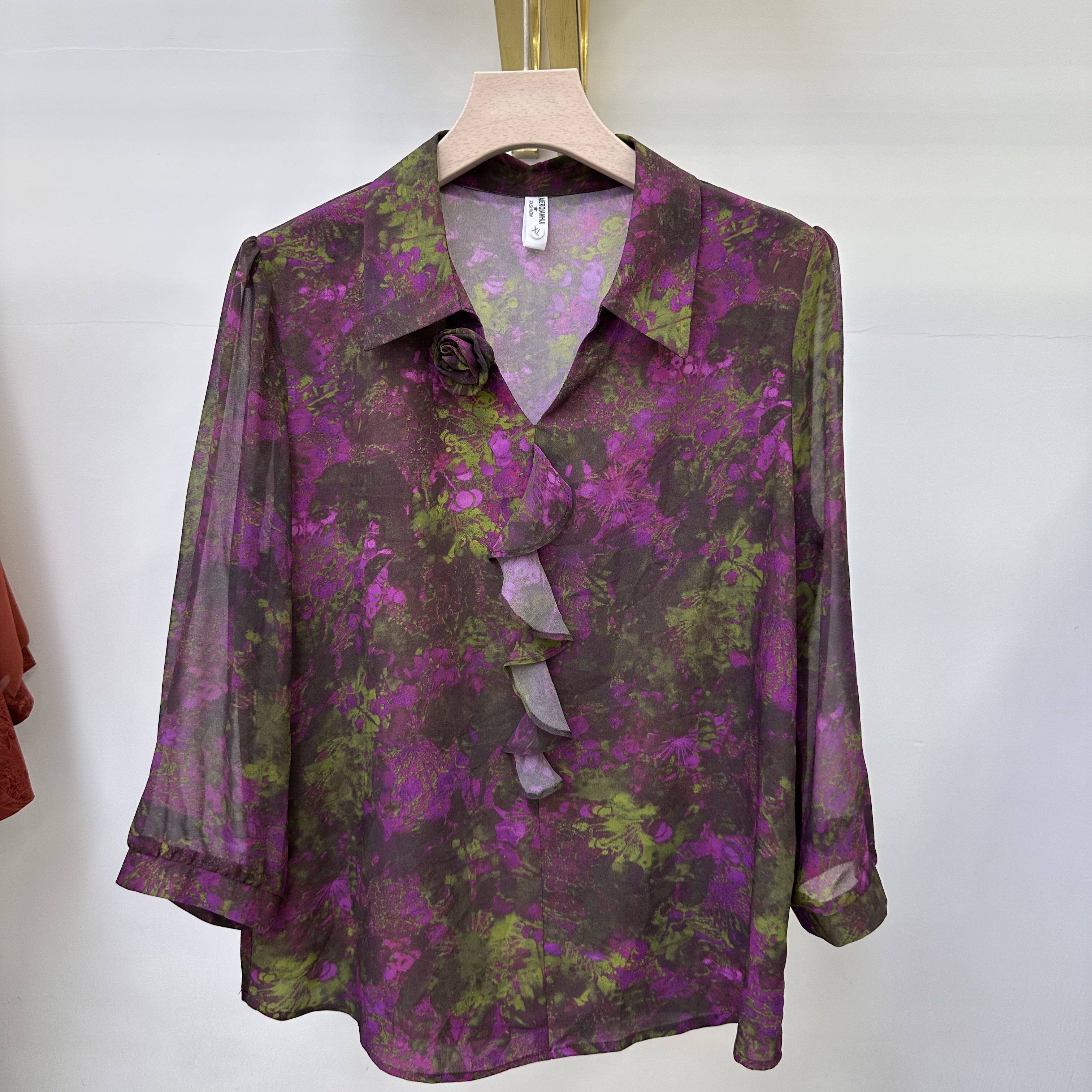 大码 春装 妈妈装 透气舒适打底七分袖 上衣女 811专柜正品 雪纺衫 新款