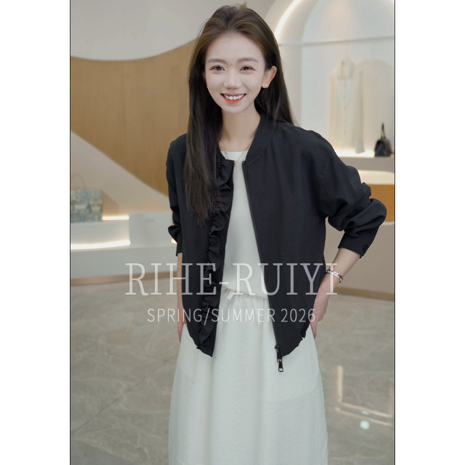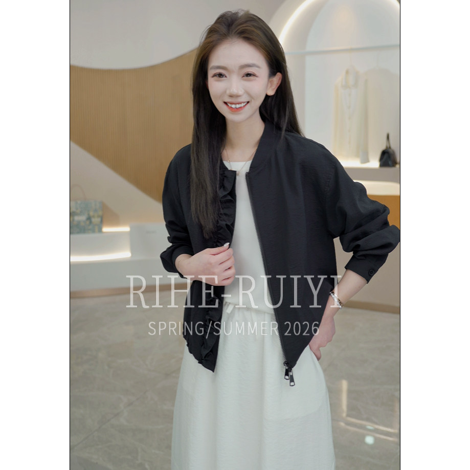 轻奢气质重磅桑蚕丝夹克外套 RH668新款 荷叶边小夹克