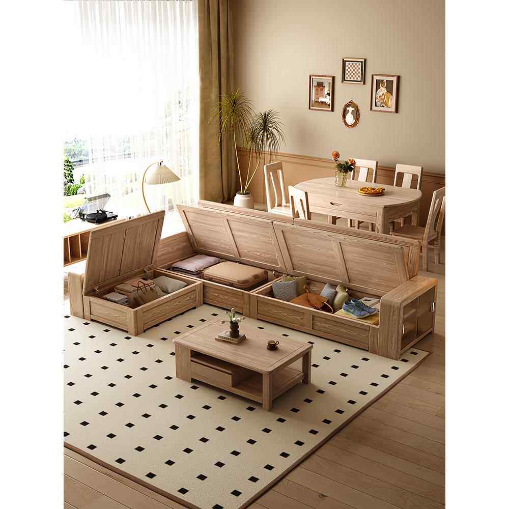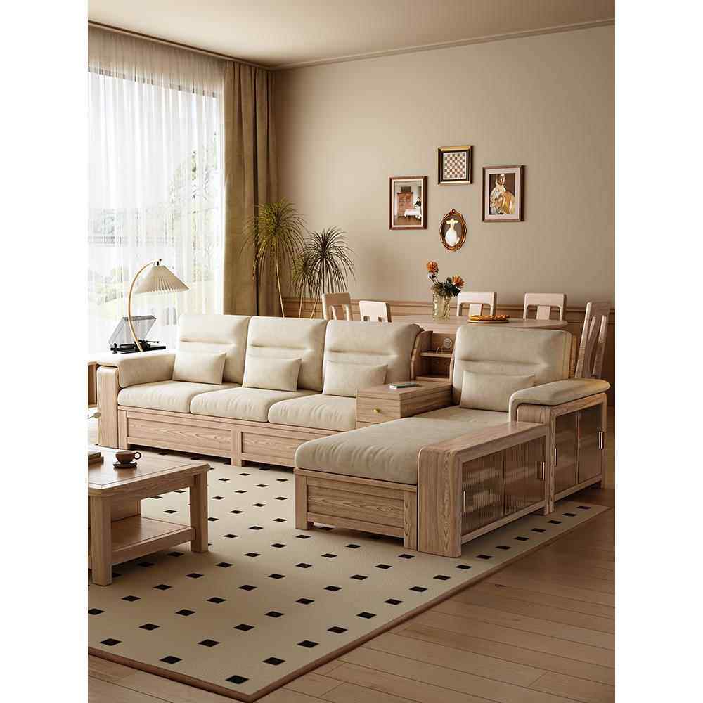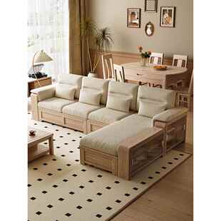 优尚雅轩北美白蜡木实木沙发现代简约原木风客厅小户型布艺沙发