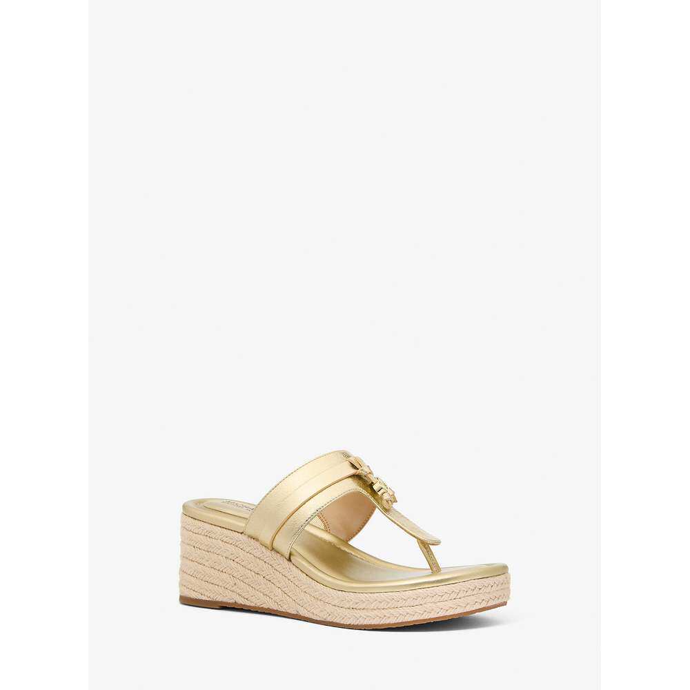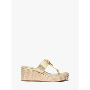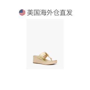 美国奥莱直发 淡金色 自营michael korsZoe金属色坡跟凉鞋