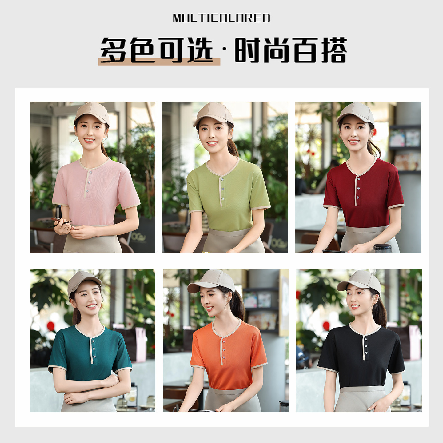 男女定制 餐饮服务员衣服奶茶饭店火锅酒店工装 夏季 t恤工作服短袖